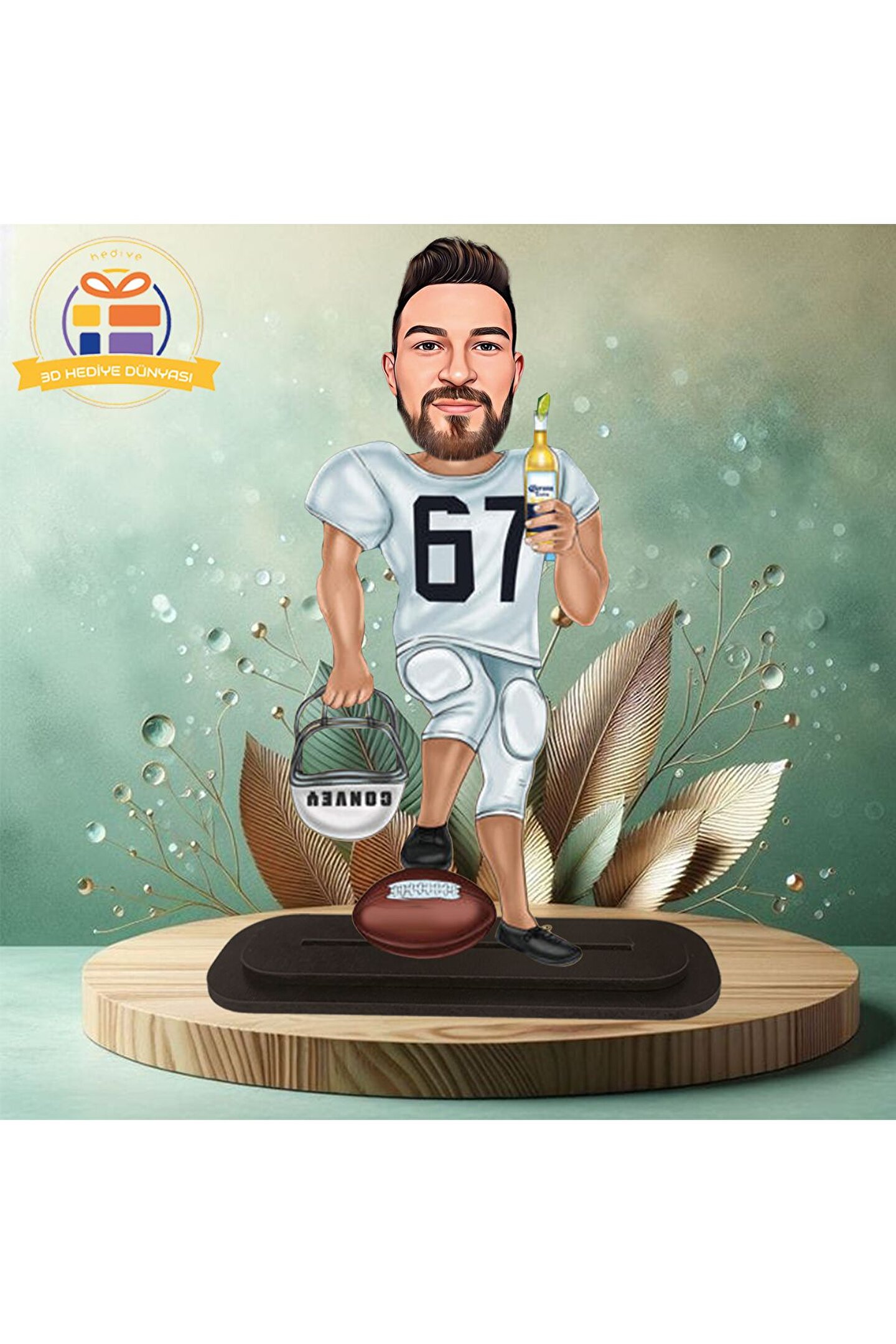 Rugby futbolcusu karikatürü biblo hediye 3d masa üstü biblo hediyesi
