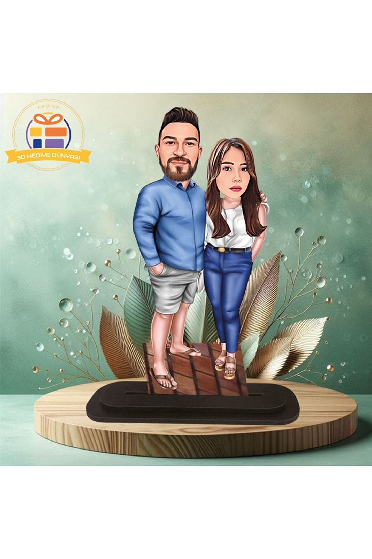 Sevgilimle gezerken karikatürlü biblo hediye 3d masa üstü biblo hediyesi