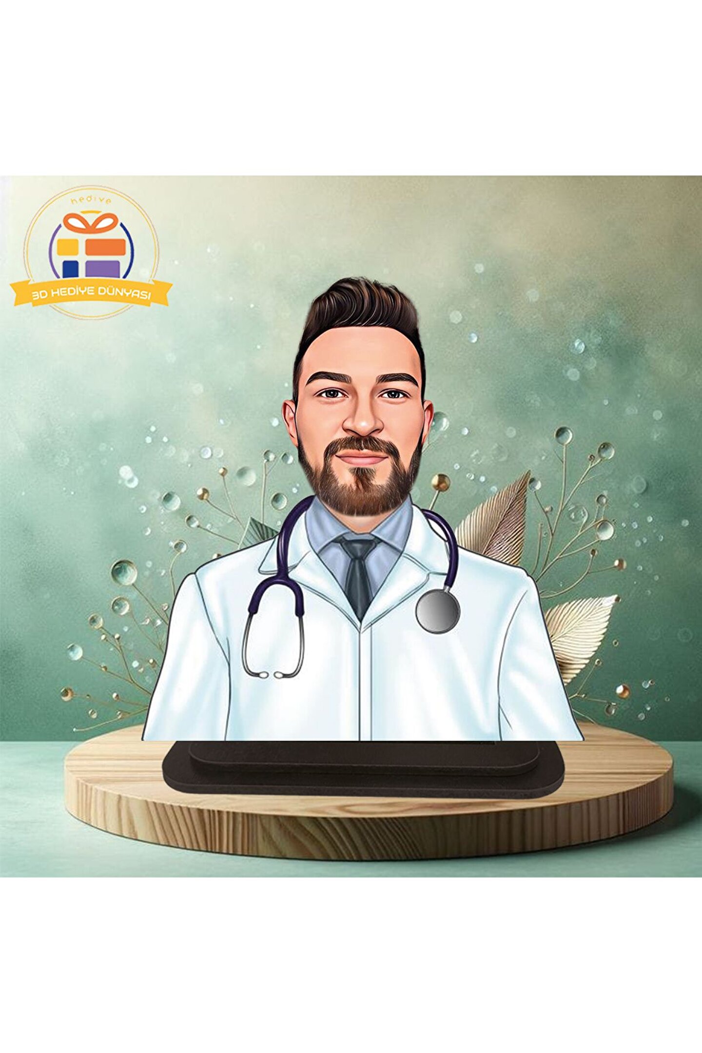 Steteskoplu doktor karikatürü biblo hediye 3d masa üstü biblo hediyesi