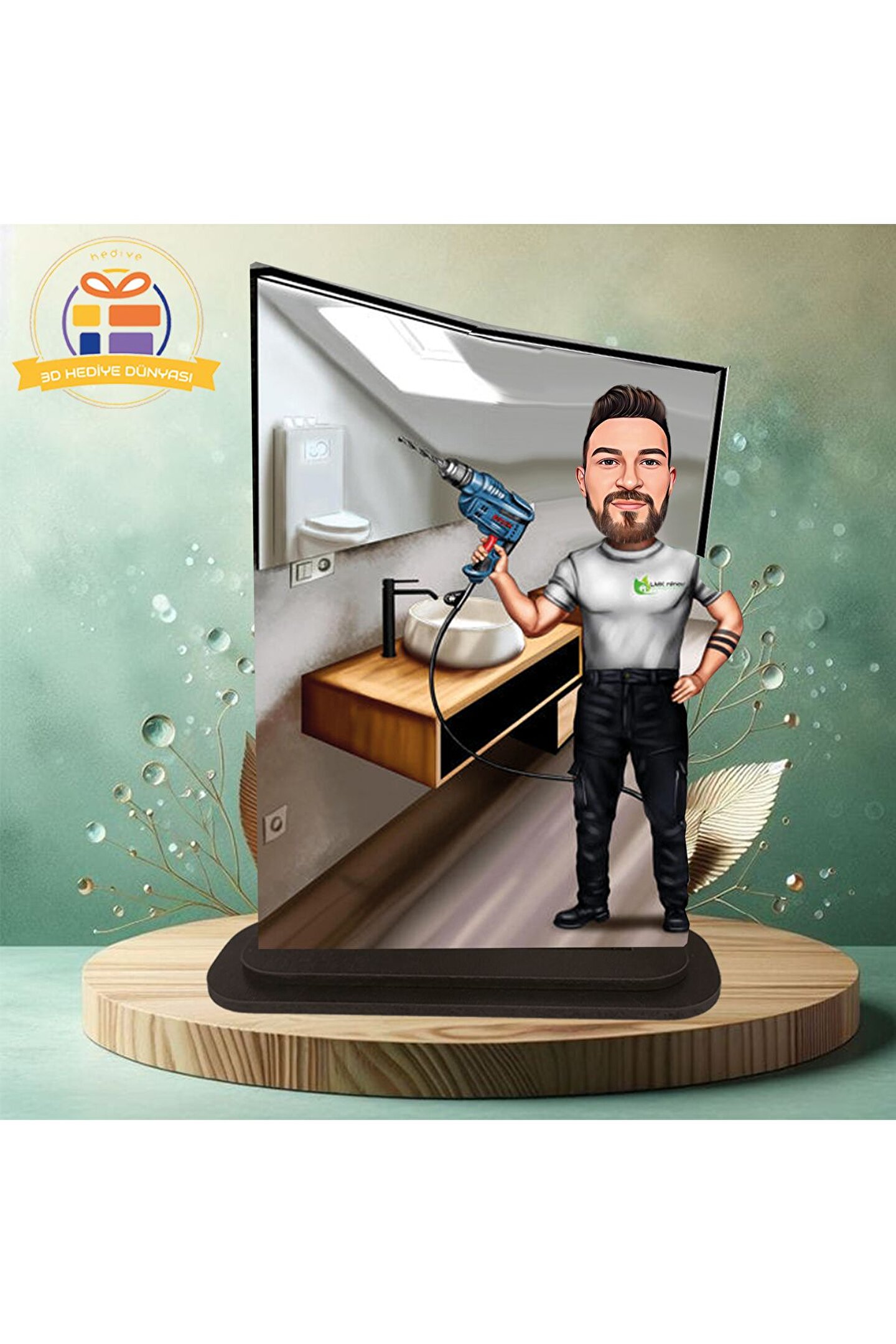 Tamirci fayans karikatürü dekorasyoncu karikatürü biblo hediye 3d masa üstü biblo hediyesi
