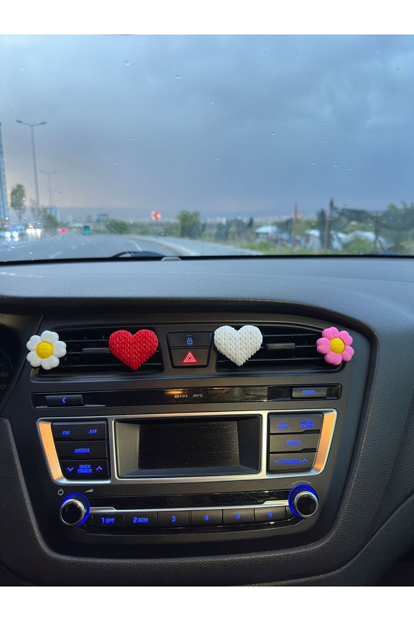 - iki adet renkli çiçek ve kalp papatya tasarımına sahip, arabanızın iç dekorasyonuna şıklık katan aksesuarlar.; - Torpido üzerinde estetik bir görünüm sunarak sürüş keyfinizi artırır.; - Kolay montaj imkanı sayesinde hızlı ve pratik bir şekilde arabanızın iç süslemelerini tamamlar.; - Menşei Türkiye'den gelen bu aksesuarlarla yerel üretim kalitesini yansıtır.; 1 adet çiçek ve 1 adet kalp gönderilmektedir