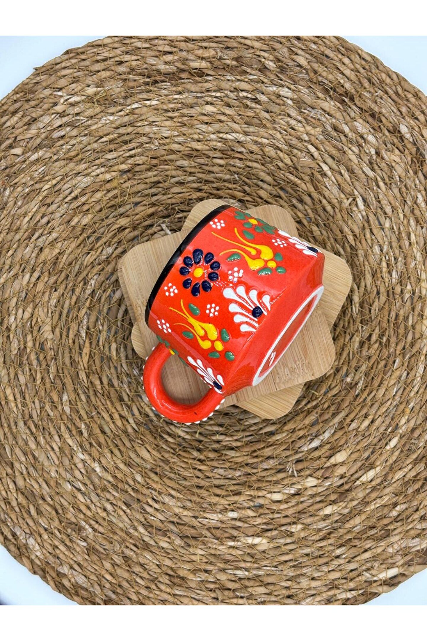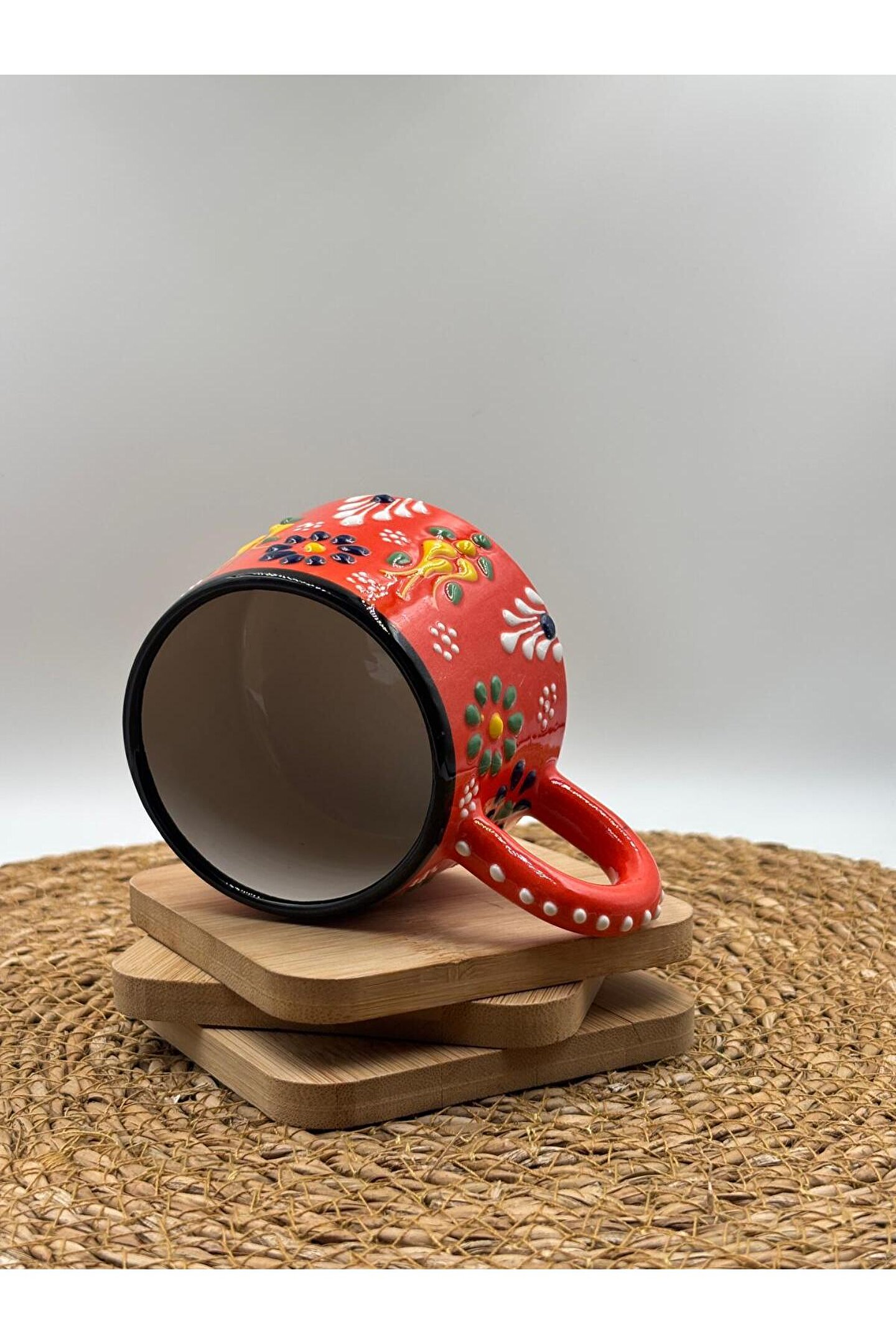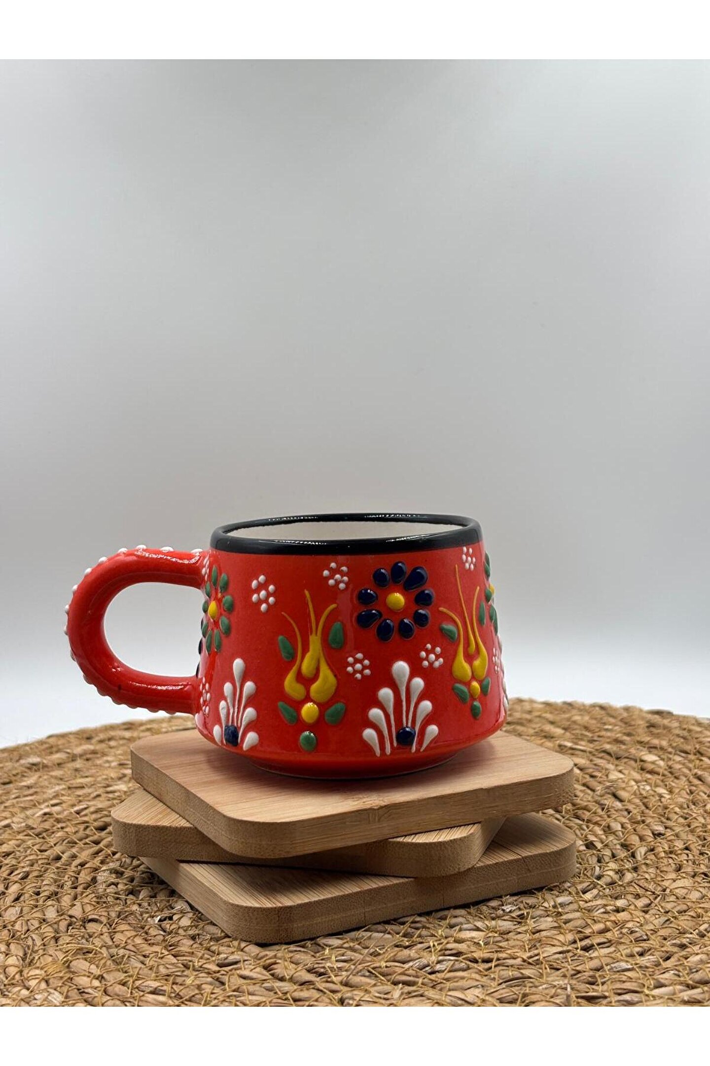 - El yapımı seramik malzemesiyle üretilmiş, benzersiz ve otantik bir tasarıma sahip.; - Kabartma desenleri ile zenginleştirilmiş yüzeyi, görsel olarak çekici bir görünüm sunar.; - 250 ml kapasitesi sayesinde içeceklerinizi keyifle tüketebilirsiniz.; - Menşei Türkiye'den gelen bu kupa, yerel el sanatlarının özgün bir temsilcisidir.