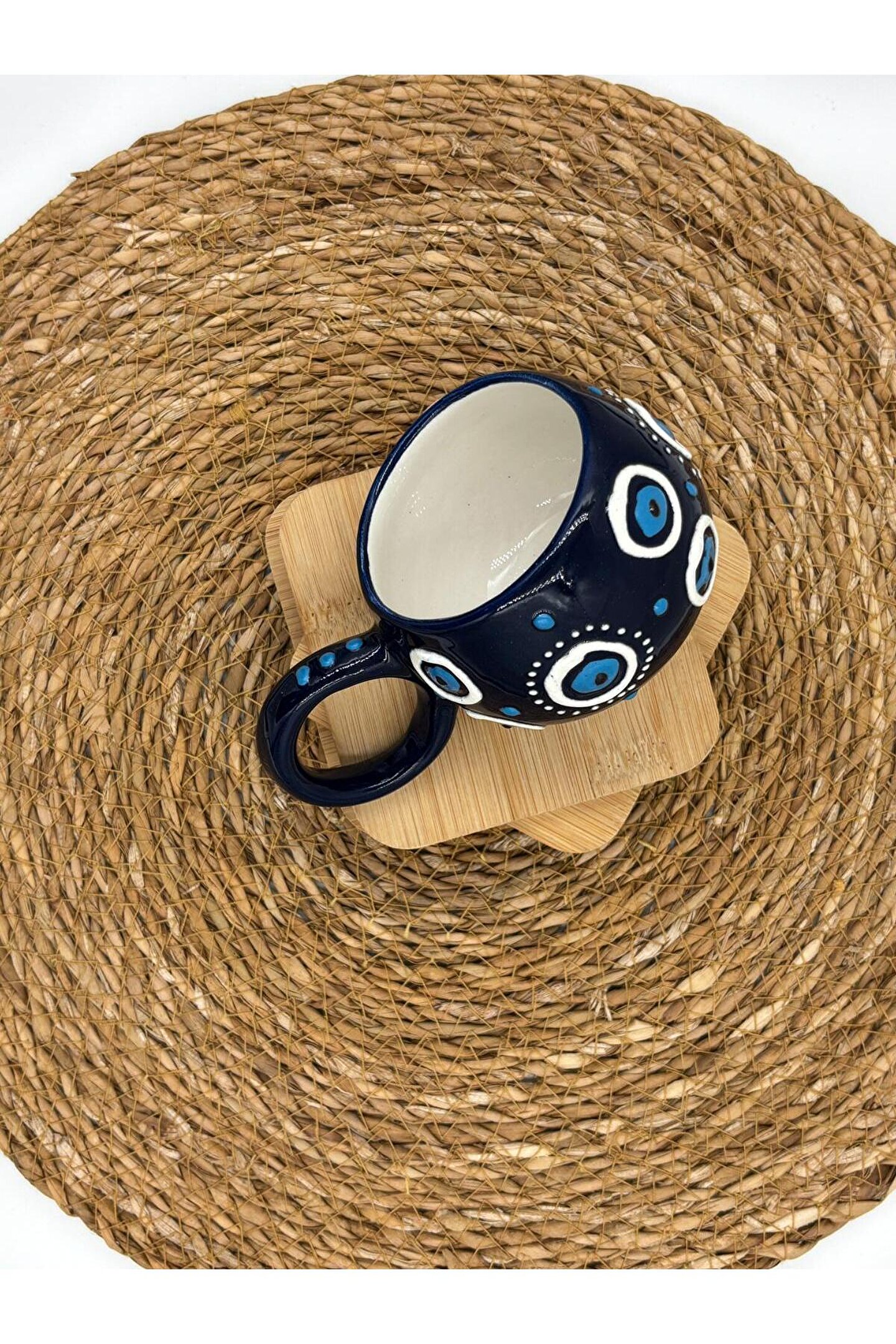 - El yapımı seramik malzemesiyle üretilmiş, benzersiz ve otantik bir tasarıma sahip.; - Kabartma desenleri ile zenginleştirilmiş yüzeyi, görsel olarak çekici bir görünüm sunar.; - 250 ml kapasitesi sayesinde içeceklerinizi keyifle tüketebilirsiniz.; - Menşei Türkiye'den gelen bu kupa, yerel el sanatlarının özgün bir temsilcisidir.