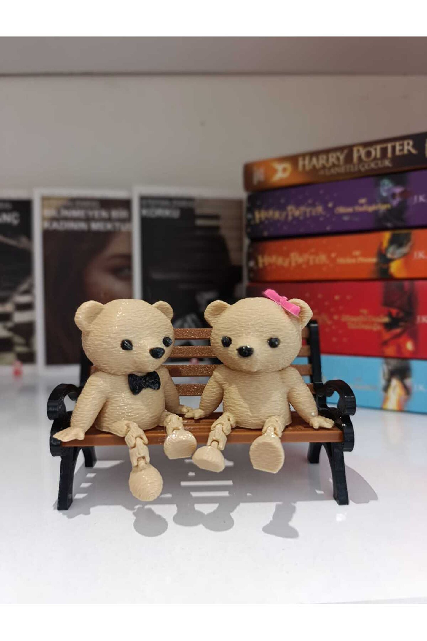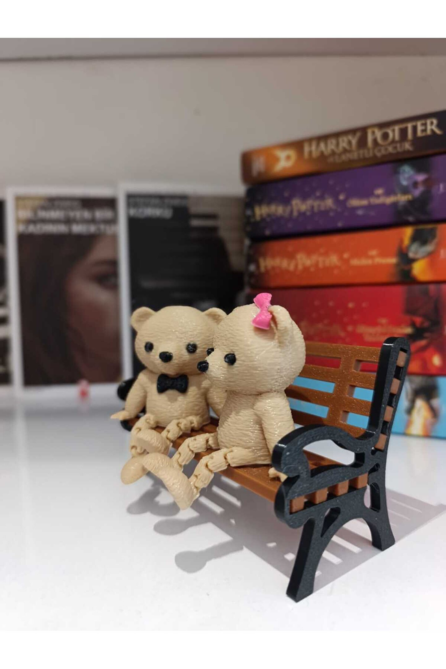 - Modern tasarımıyla dikkat çeken bu dekoratif biblo, bankta oturan ikili sevimli ayıcık figürleriyle evinizin veya ofisinizin atmosferini zenginleştirir.; - Üç parçadan oluşan set, hem şıklığı hem de fonksiyonelliği bir arada sunarak mekanınıza sıcaklık katar.; - Dayanıklı plastik materyali sayesinde uzun ömürlü kullanım vaat ederken, kolay temizlenebilir yapısı ile pratiklik sağlar.; - Hem dekoratif hem de kişisel hediye olarak tercih edilebilir.