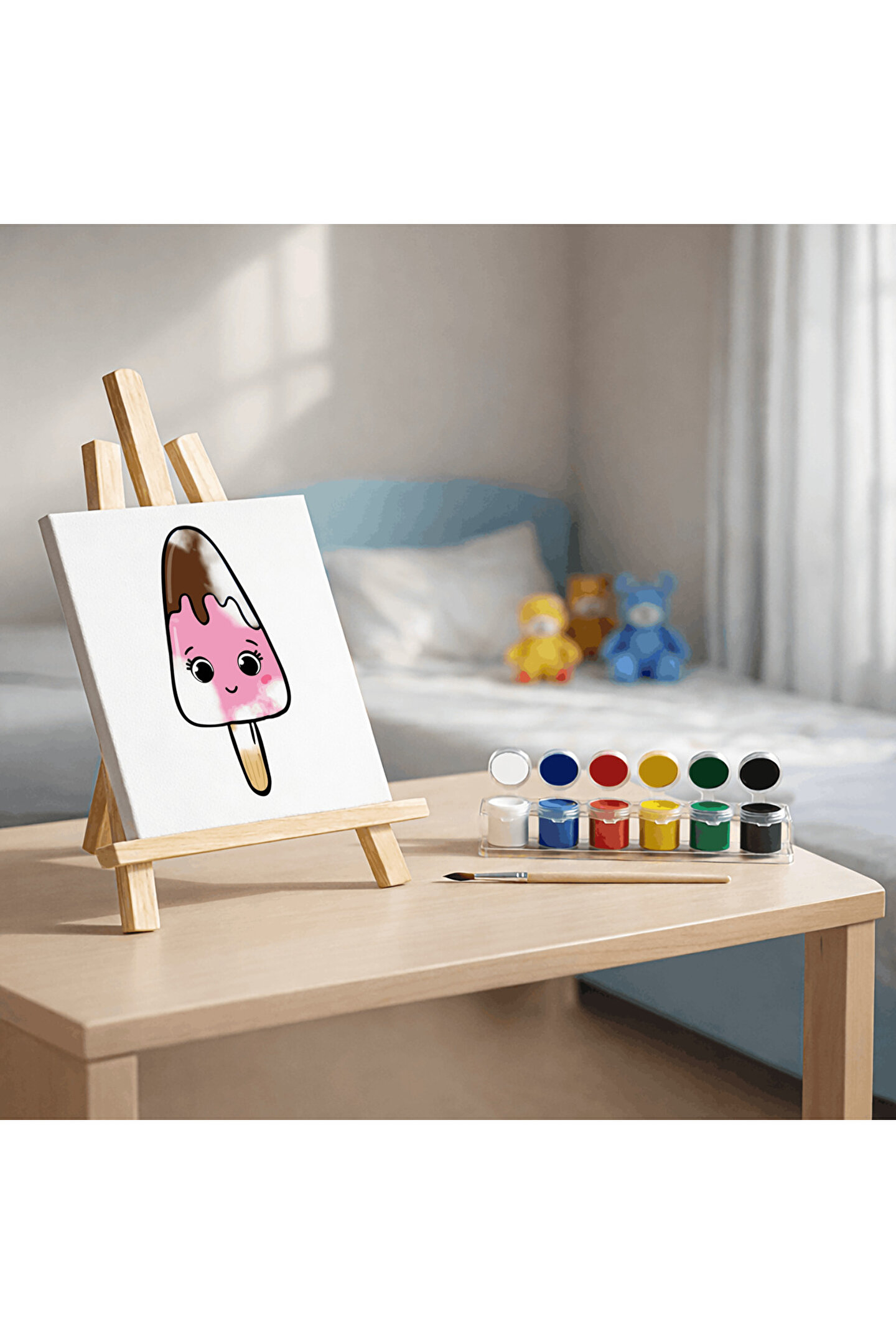 Ürün İçeriği: 1 adet 20x20 cm desenli tuval 1 adet düz fırça 6 adet akrilik boya(Beyaz, Mavi, Yeşil, Sarı, Kırmızı, Siyah) Öne Çıkan Özellikler: Çocukların yaratıcılığını ve el-göz koordinasyonunu geliştirir Desenli tuval sayesinde kolay ve keyifli boyama Akrilik boyalar canlı renkler sunar Doğum günü, karne ve özel günler için harika hediye seçeneği Kullanım Alanı: Ev, okul, etkinlikler ve yaratıcı oyun saatleri Not: 3 yaş altı çocuklar için ebeveyn gözetiminde kullanılması önerilir.
