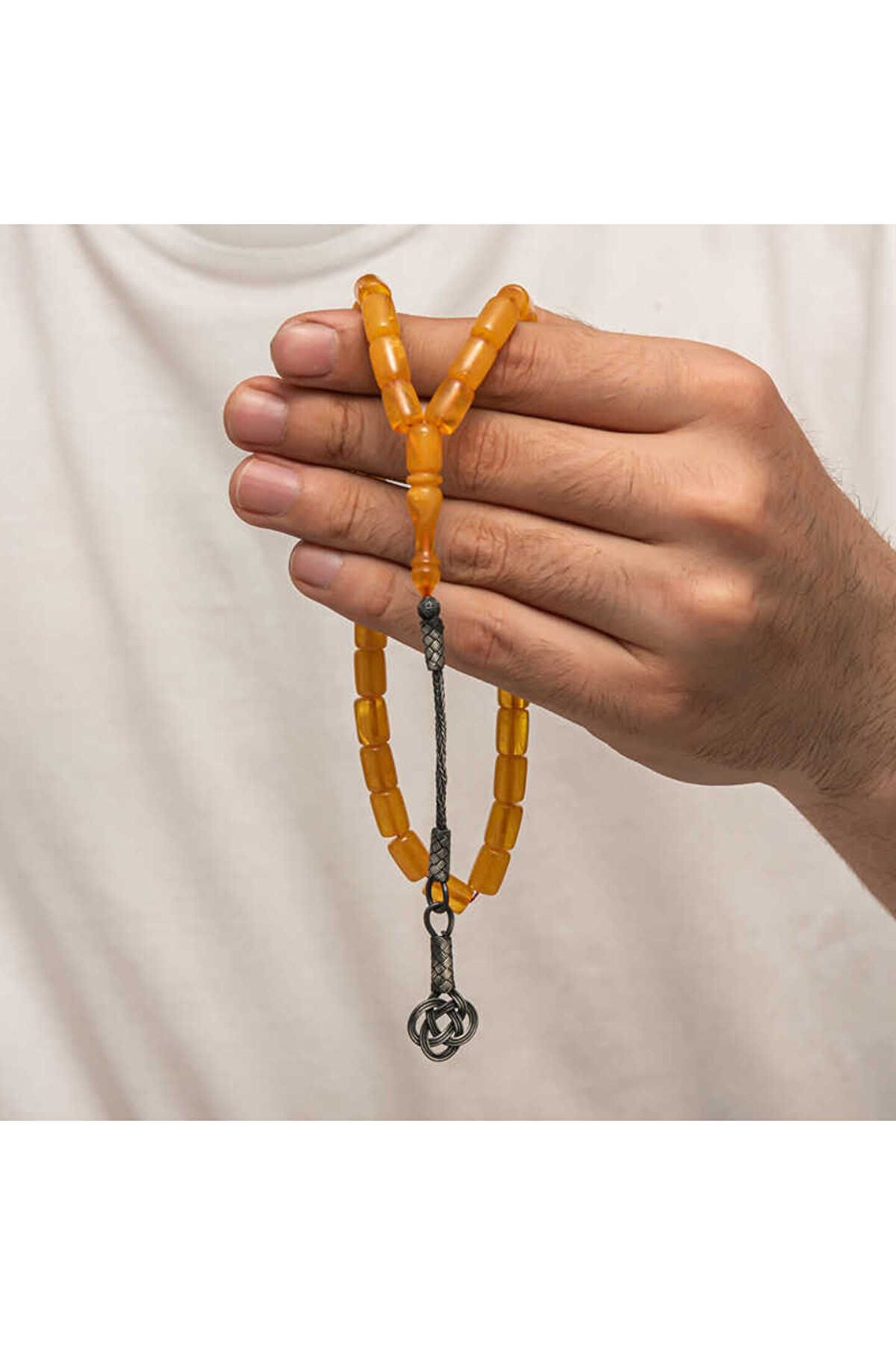 Gümüş Kazaz Püsküllü Sıkma Kehribar Tesbih
