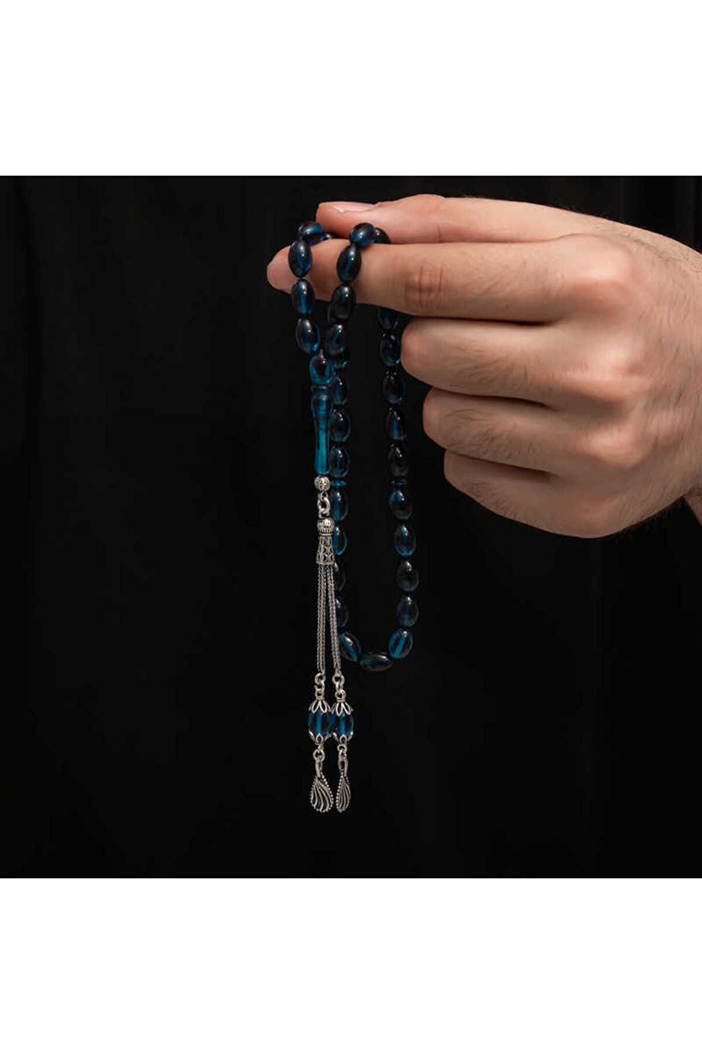 Gümüş Püskül Sıkma Kehribar Tesbih