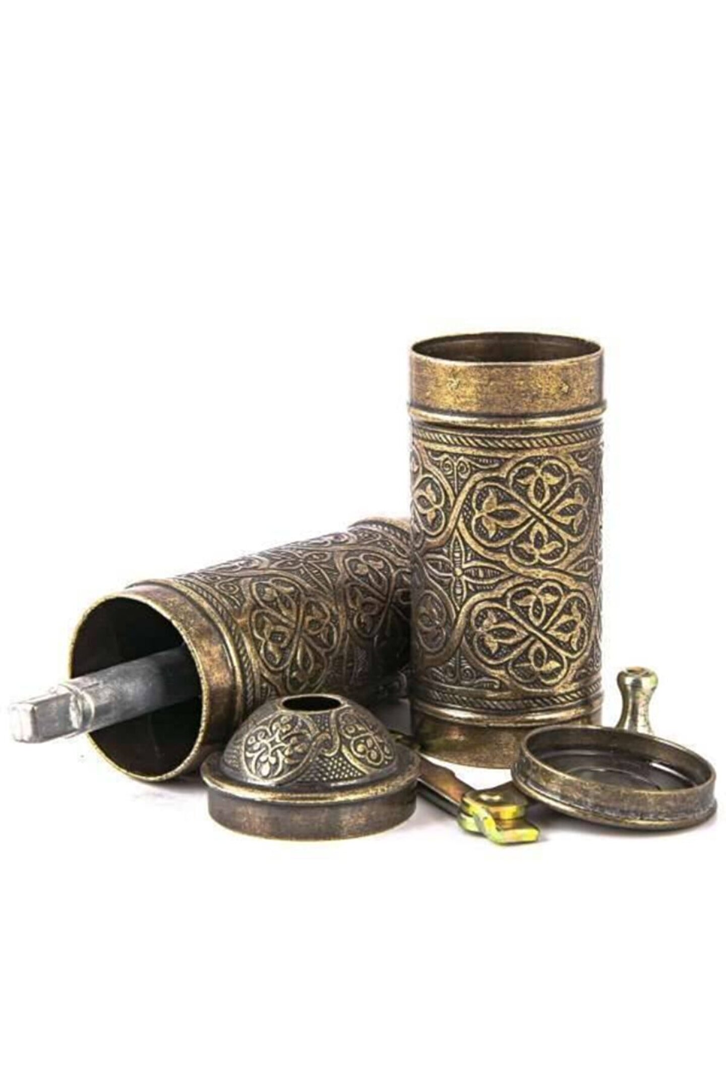 KAHVE ÖĞÜTÜCÜ KAHVE DEĞİRMENİ EL DEĞİRMENİ 20-22 cm uzunluğundadır...4-4.5 cm genişliğindedir...Bu ürünle bir çok seyi öğütebileceksiniz.. ; çekme vidası, öğütme haznesi, sap ve kapak parçalarından oluşmaktadır. ; Değirmeni ayırdığınızda çekme vidası ve öğütme haznesini görebilirsiniz. ; Geleneksel bir yöntemin vazgeçilmez bir kıymeti olan değirmeni, çekirdek kahvenin öğütülmüş forma geçmesi esnasındaki tüm keyfi size yaşatacağından emin olabilirsiniz. ; Bakır üretimi olmasından dolayı son derece dayanıklı olup uzun zaman keyifle ve aynı istikrar ile kullanabilirsiniz.;