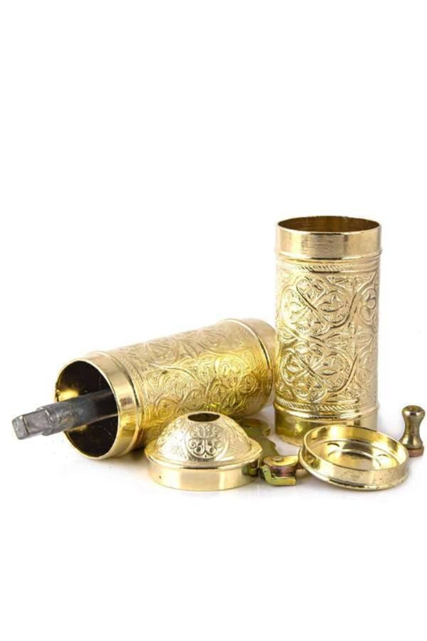 KAHVE ÖĞÜTÜCÜ KAHVE DEĞİRMENİ EL DEĞİRMENİ 20-22 cm uzunluğundadır...4-4.5 cm genişliğindedir...Bu ürünle bir çok seyi öğütebileceksiniz.. ; çekme vidası, öğütme haznesi, sap ve kapak parçalarından oluşmaktadır. ; Değirmeni ayırdığınızda çekme vidası ve öğütme haznesini görebilirsiniz. ; Geleneksel bir yöntemin vazgeçilmez bir kıymeti olan değirmeni, çekirdek kahvenin öğütülmüş forma geçmesi esnasındaki tüm keyfi size yaşatacağından emin olabilirsiniz. ; Bakır üretimi olmasından dolayı son derece dayanıklı olup uzun zaman keyifle ve aynı istikrar ile kullanabilirsiniz.;