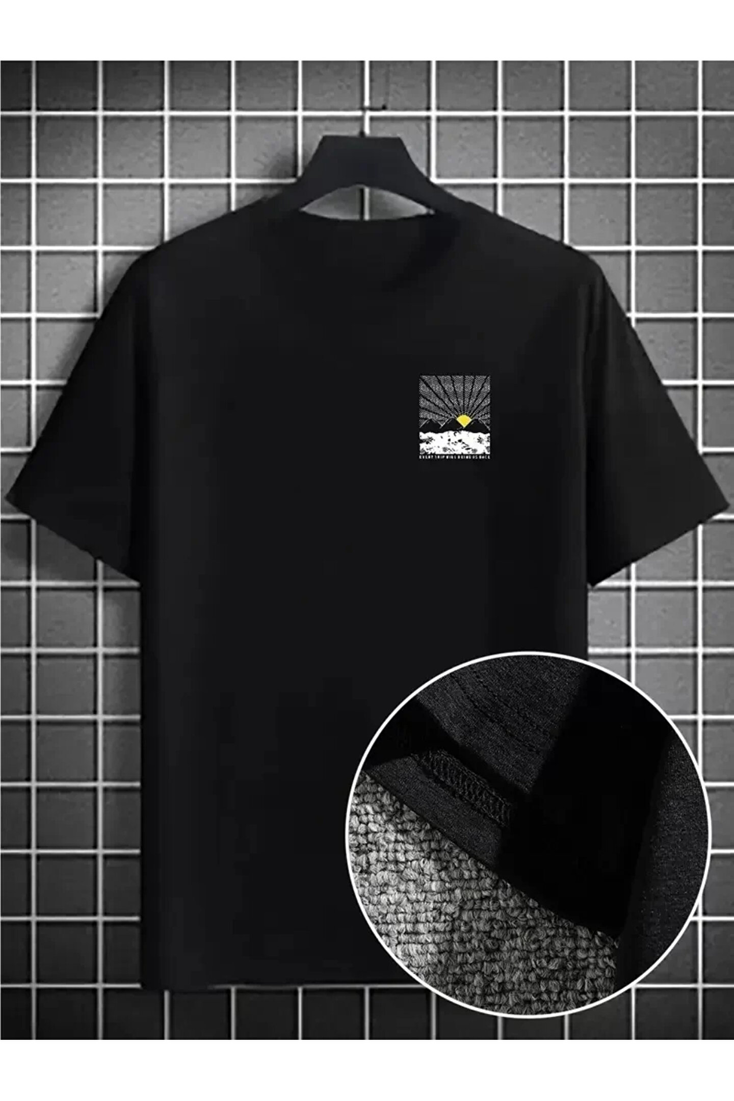 Adora Moda Erkek Dağ Grafikli Tişört, Yaz için Büyük Beden Rahat T-shirt - Siyah