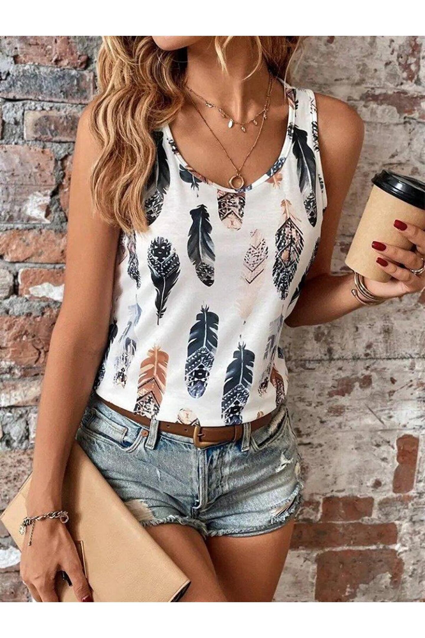 Kadın Sıfır Kollu V Yakalı Yaprak Desenli Süprem Bluz.; Ürün detayları ve kullanım hissi kişisel tercihlere göre değişiklik gösterebilir.