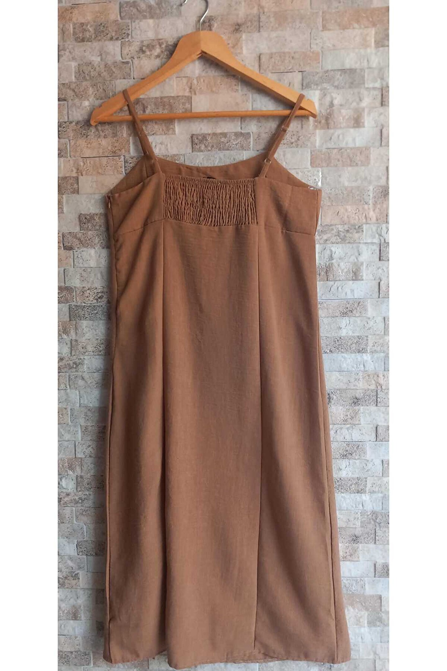 AEK Ip Askılı Yandan Fermuarlı Kahverengi Elbise