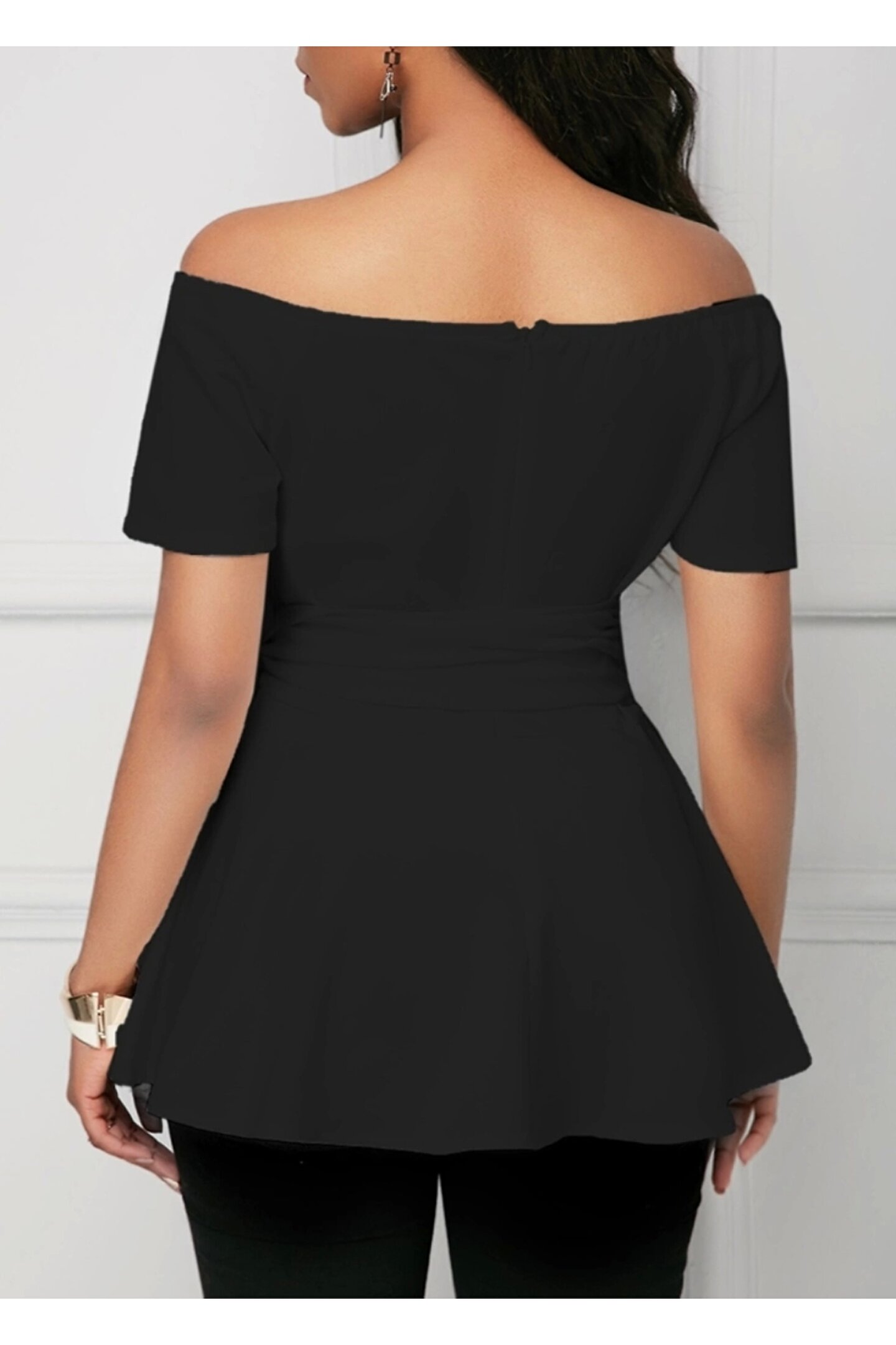Aesco Kadın Kısa Kollu Madonna Yaka Yandan Bağlamalı Ithal Krep Bluz