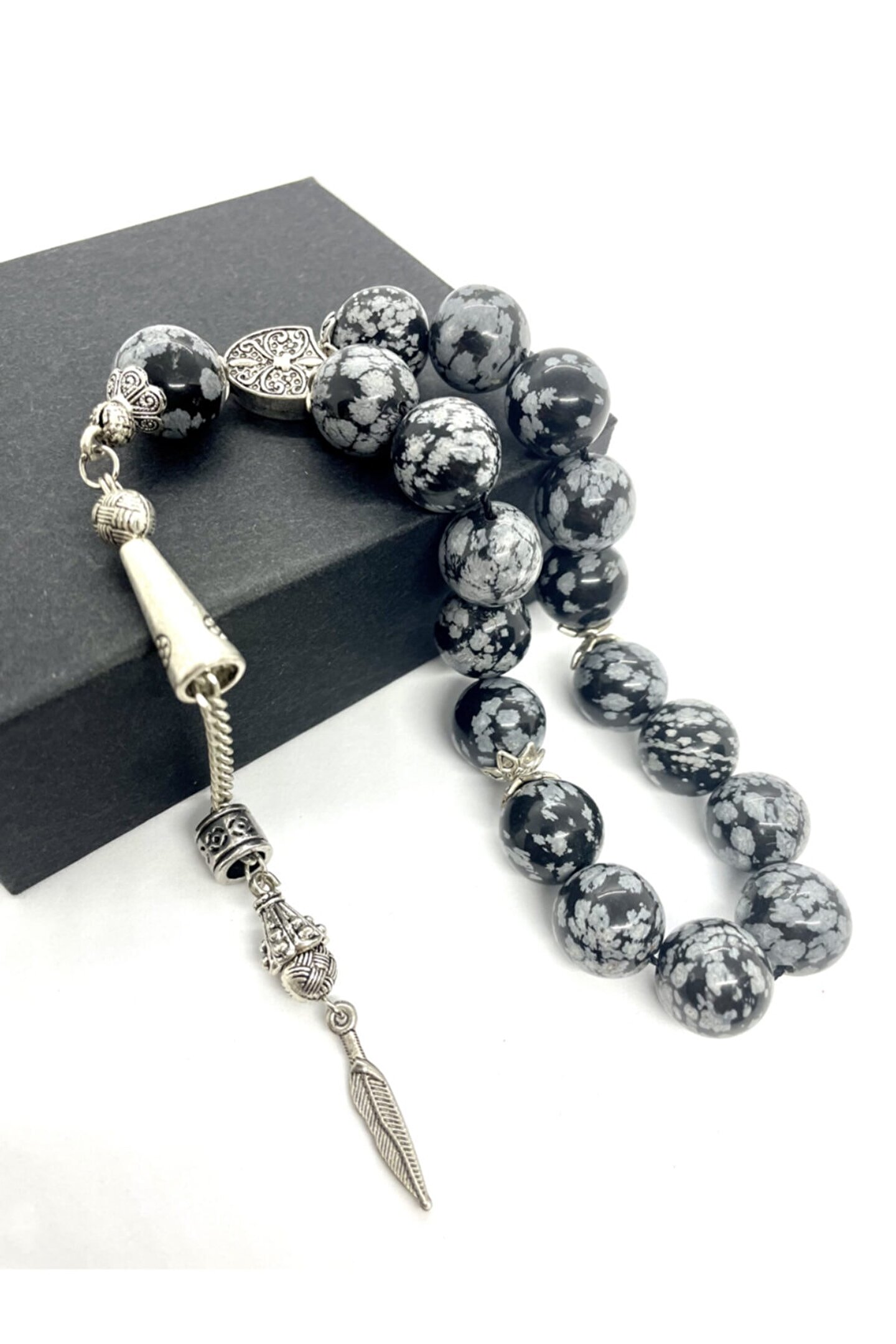 Orijinal obsidyen doğaltaş kullanılarak üretilmiş, doğal taş tesbih ile manevi bir deneyim sunar; Obsidyen taşı, yüksek kaliteli ve dayanıklı yapısıyla uzun süreli kullanım için idealdir; Tesbihin her bir bileşeni özenle seçilmiş ve işlenmiş, estetik görünümüyle dikkat çeker; Doğal taşın benzersiz dokusu ve renk tonları, her kullanımda farklı bir hissiyat yaratır; Tesbihin yapımında kullanılan malzemeler, hem doğallığı hem de estetiği ön planda tutularak seçilmiştir;
