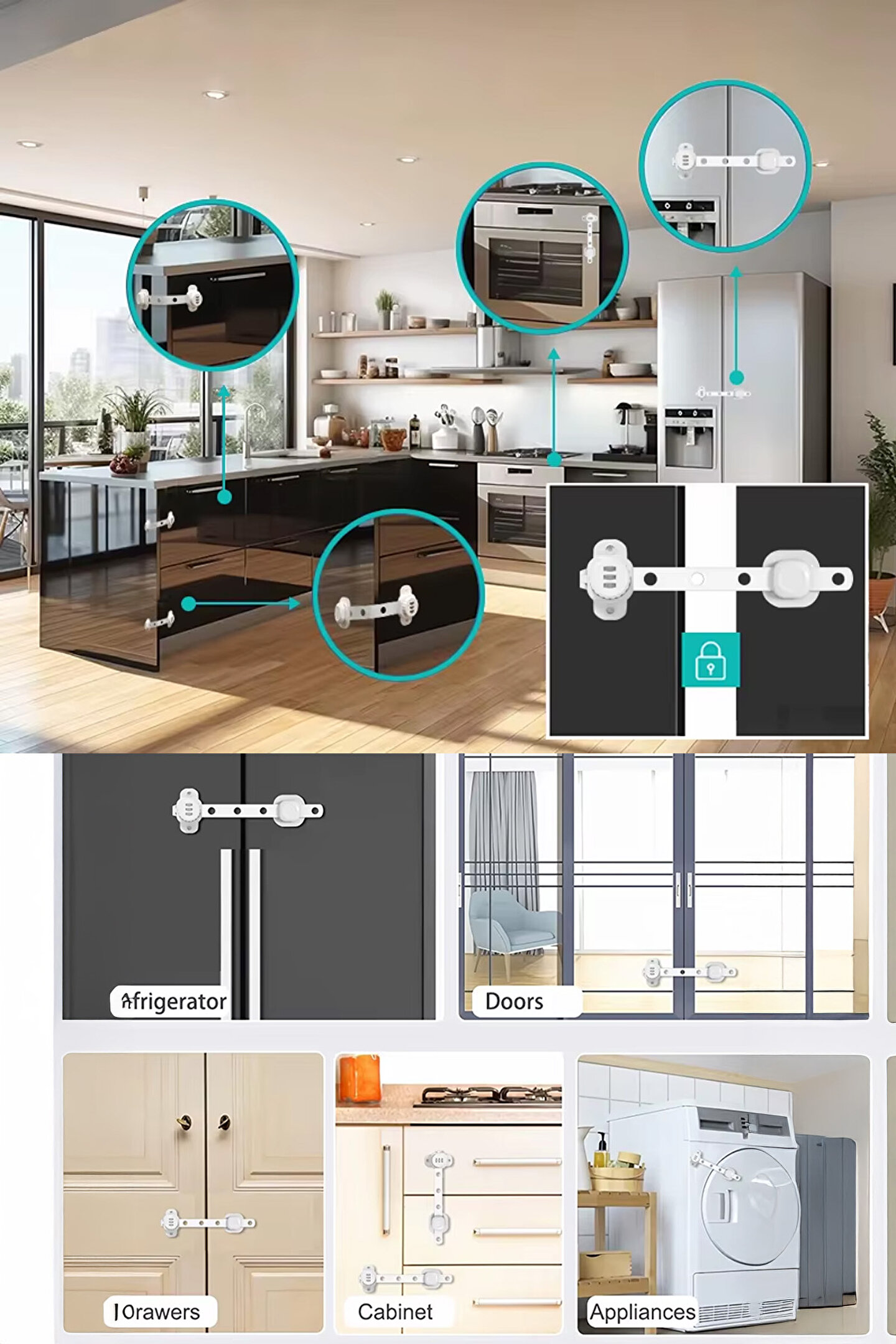 Agubugu Baby Numaratör ŞifreliÇok Amaçlı Esnek Dolap ve Çekmece Kilidi , evinizdeki dolapları,çekmeceleri, buzdolabını ve diğer eşyaları güvenle kilitlemenize yardımcı olur.Yüksek kaliteli, dayanıklı malzemeden üretilmiş olup, esnek yapısı sayesindefarklı yüzeylere kolayca adapte olur.