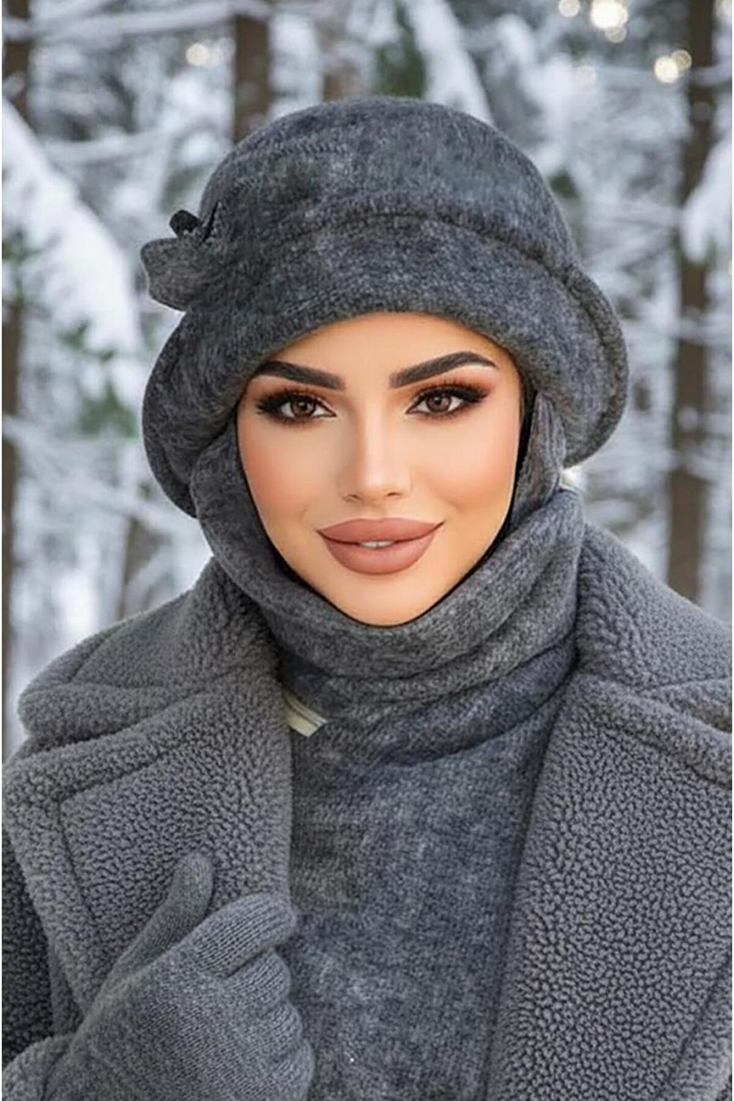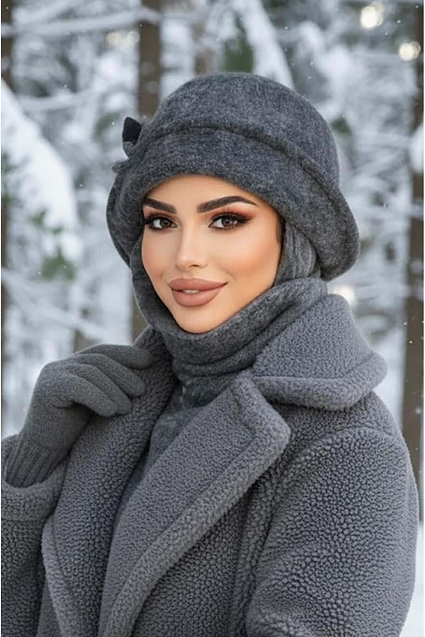 Aişe tesettür Antrasit Melanj Aksesuarlı Atkılı Vintage Şapka