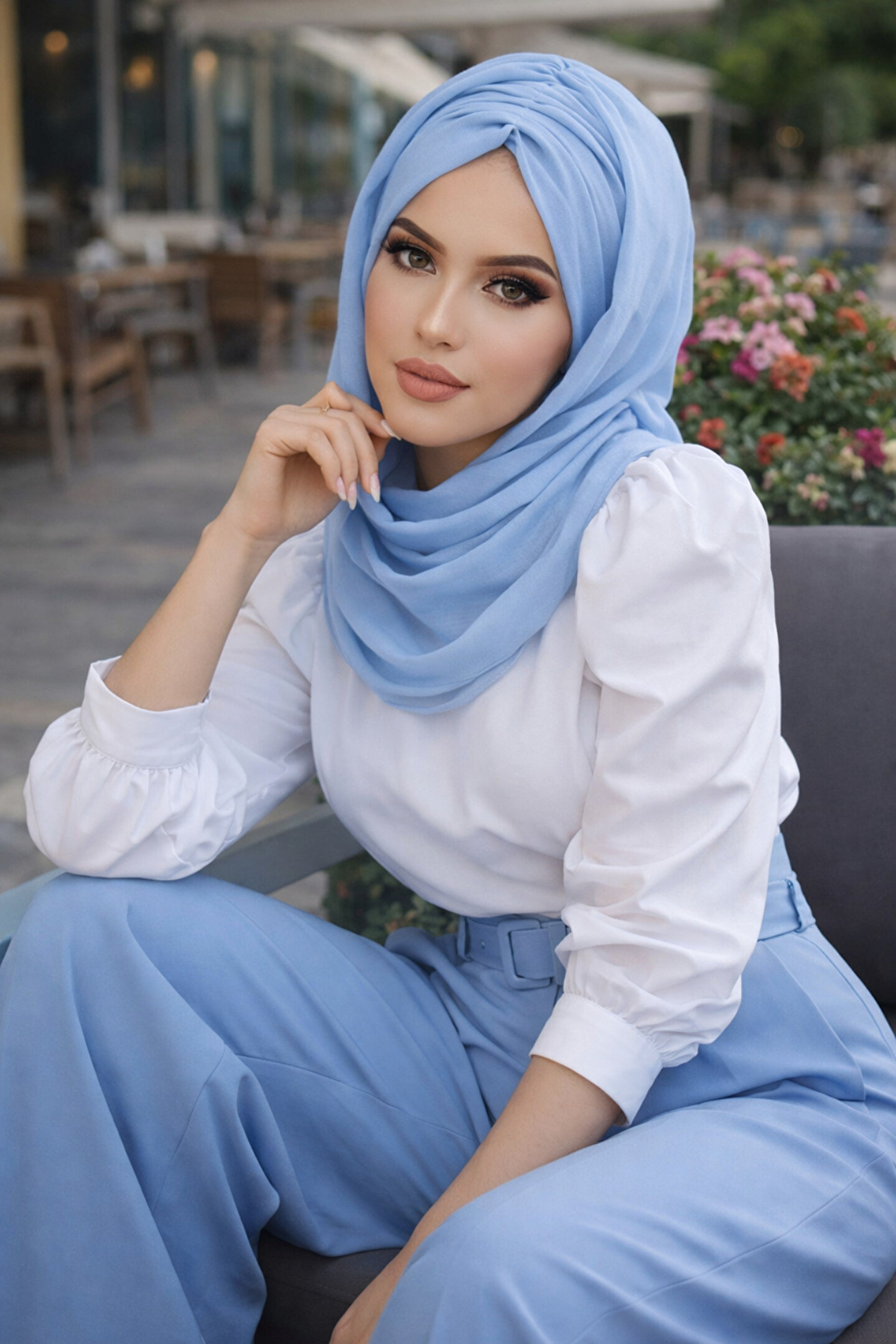 Aişe tesettür Bebe Mavi Büzgülü Hazır Şal