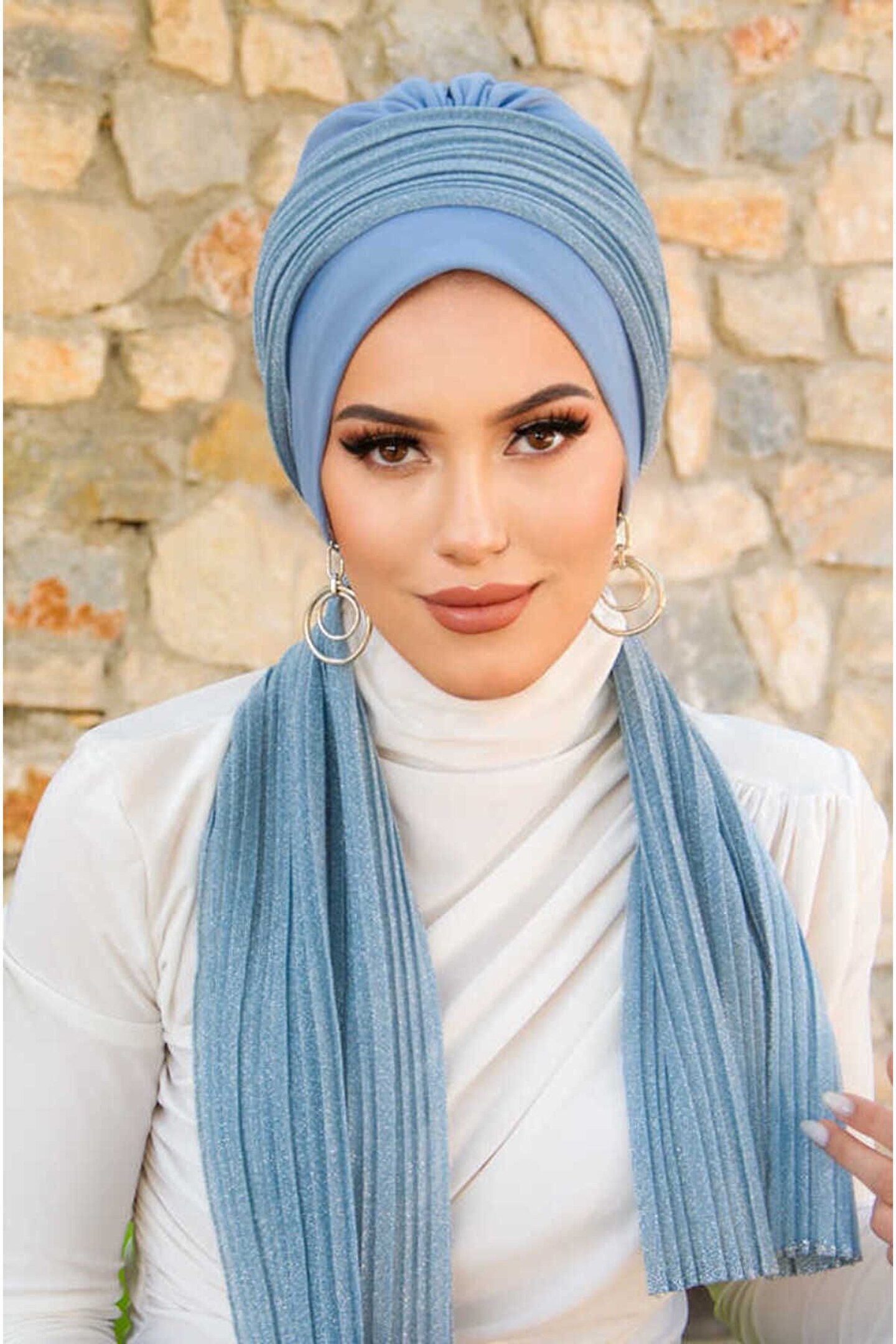 Gri Melanj İnce Örme Armalı Tesettür Bere
