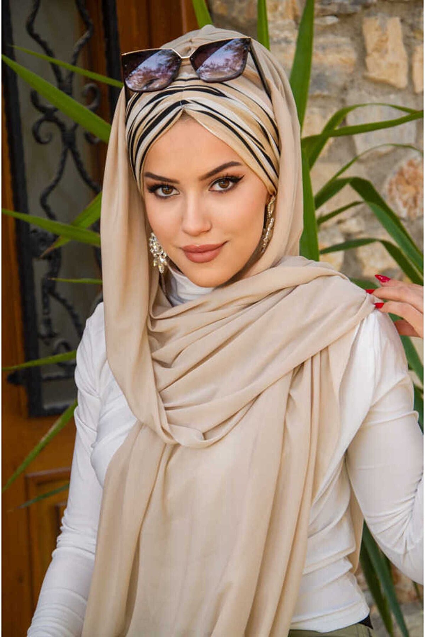 Gri Melanj İnce Örme Armalı Tesettür Bere