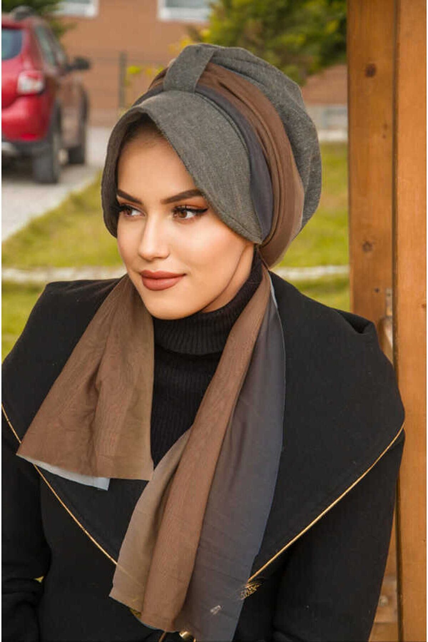 Haki Siyah Desen Büzgülü Salaş Bone