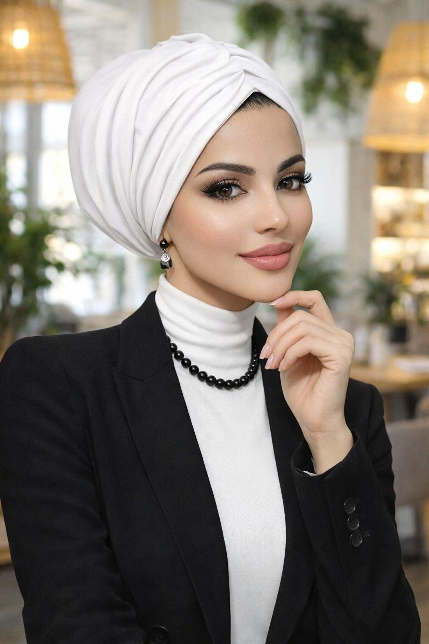 Gardırobunuzun en joker parçasıyla tanışın! Beyaz Büzgülü Salaş Bone, sadeliği ve modern tasarımı bir araya getirerek tüm renkli şal ve kıyafetleriniz için kusursuz bir zemin hazırlar. Likralı örme kumaşı ve dökümlü yapısıyla mevsim ne olursa olsun ferah ve şık kalmanızı sağlar.