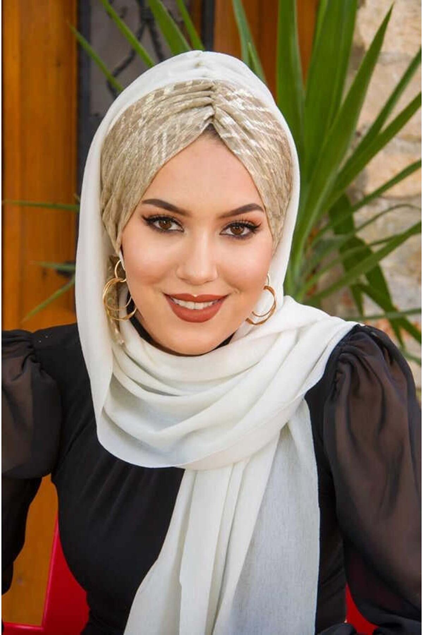- Yumuşak dokusuyla öne çıkan pamuk polyester karışımı materyal, gün boyu konforlu bir kullanım sunar; - Beyaz dore kelebek modeli ile şıklığı ve zarafeti bir arada barındırır, her türlü kıyafetle kolayca uyum sağlar; - Kolay bakım imkanı sunan yıkama talimatları sayesinde, şalınızın ilk günkü canlılığını uzun süre korumasını sağlar;