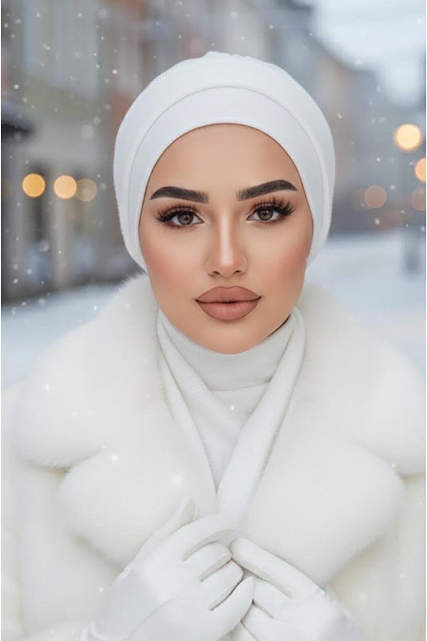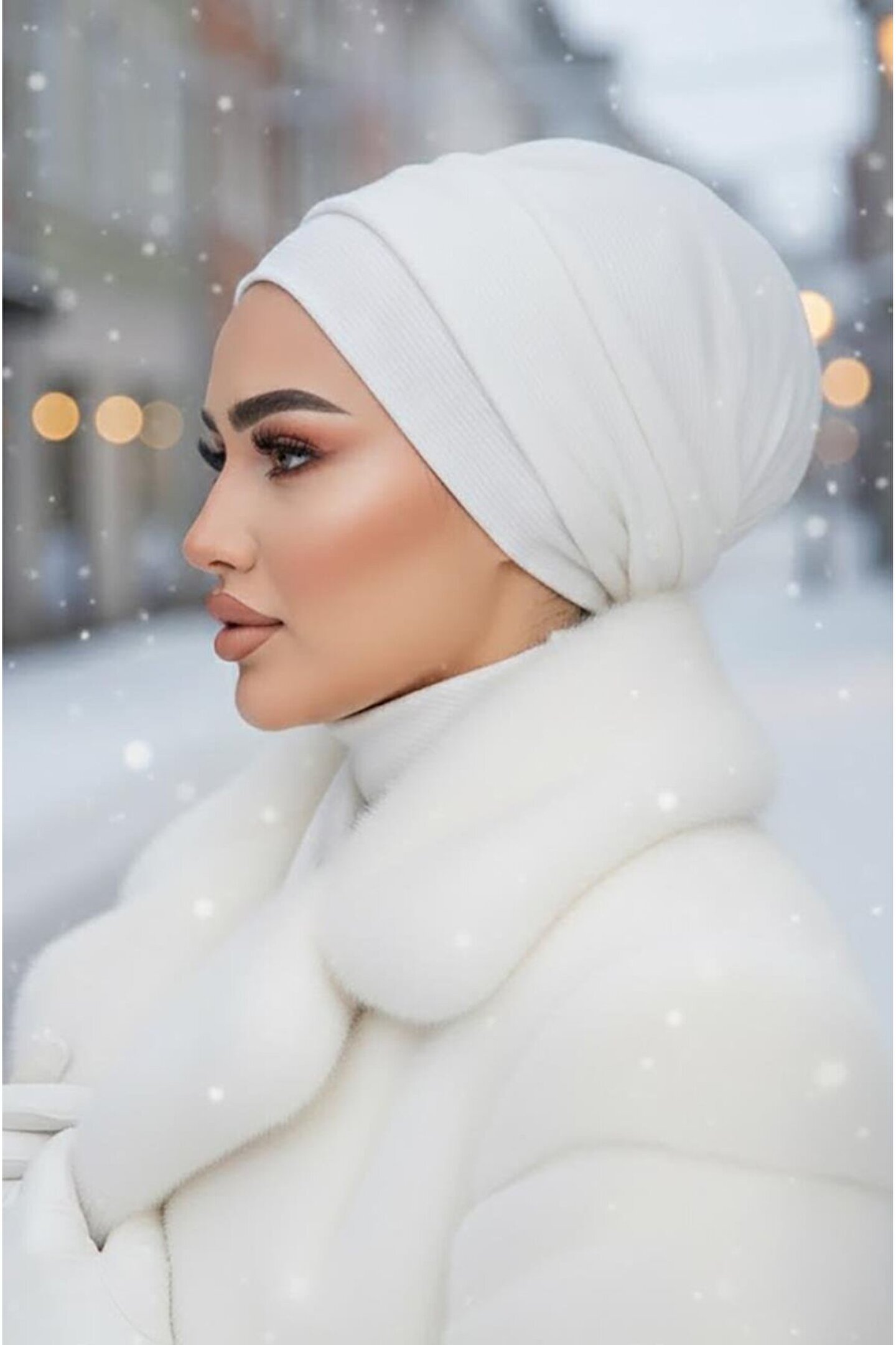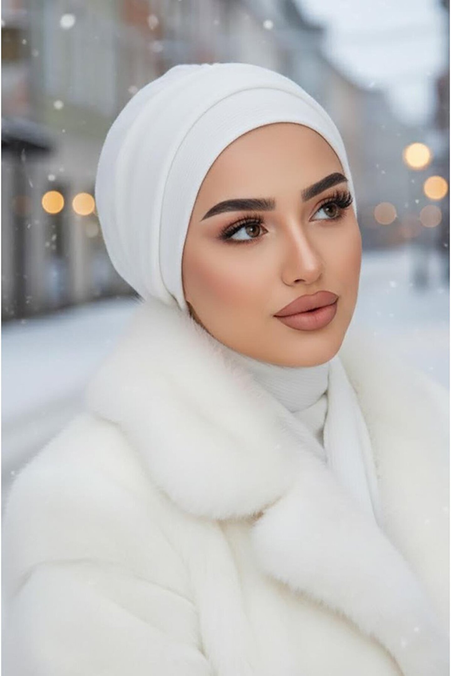 Aişe tesettür Beyaz Hazır Atkılı Tesettür Bone