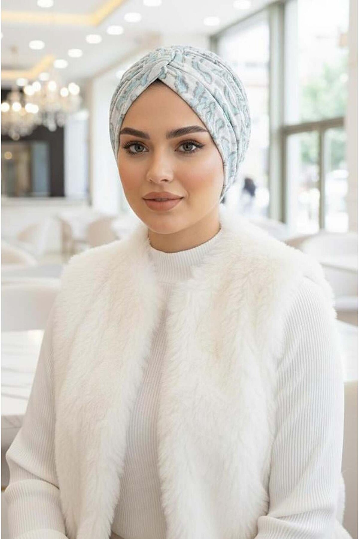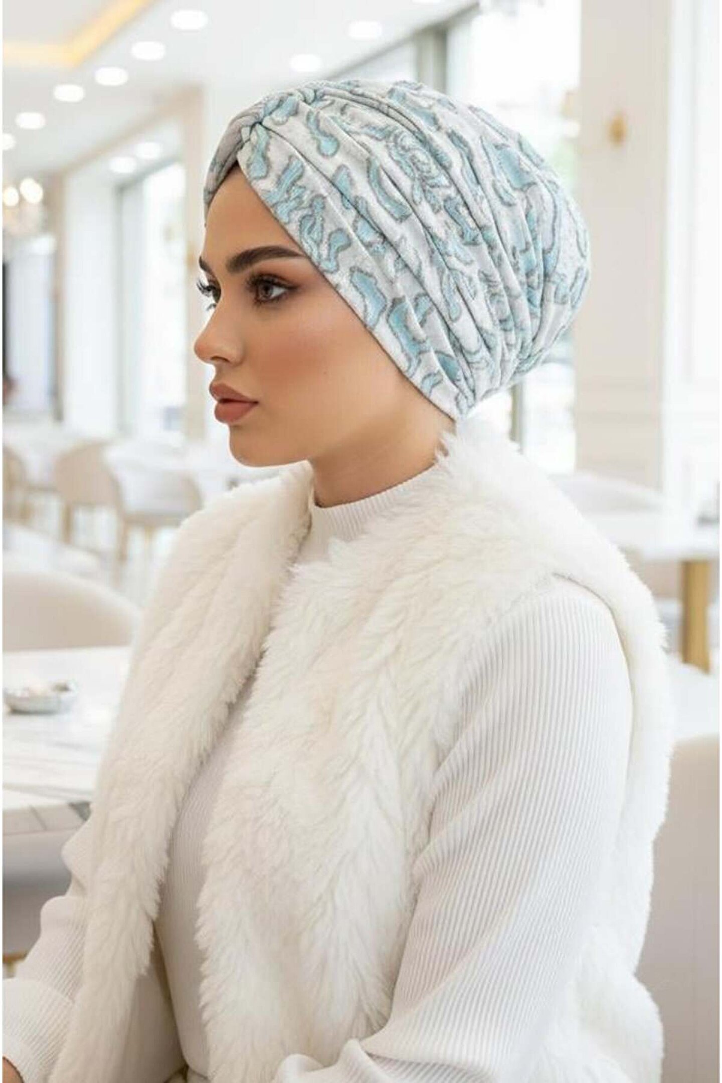 Aişe tesettür Beyaz Mavi Desenli Büzgülü Salaş Bone