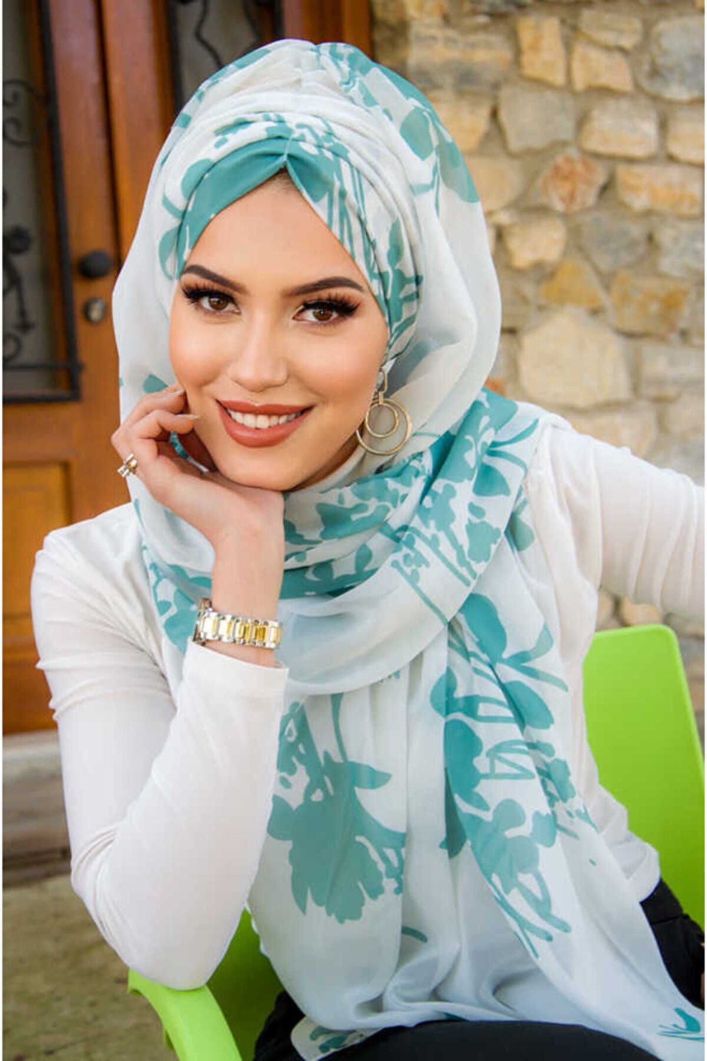 Beyaz Mavi Desenli Büzgülü Salaş Bone