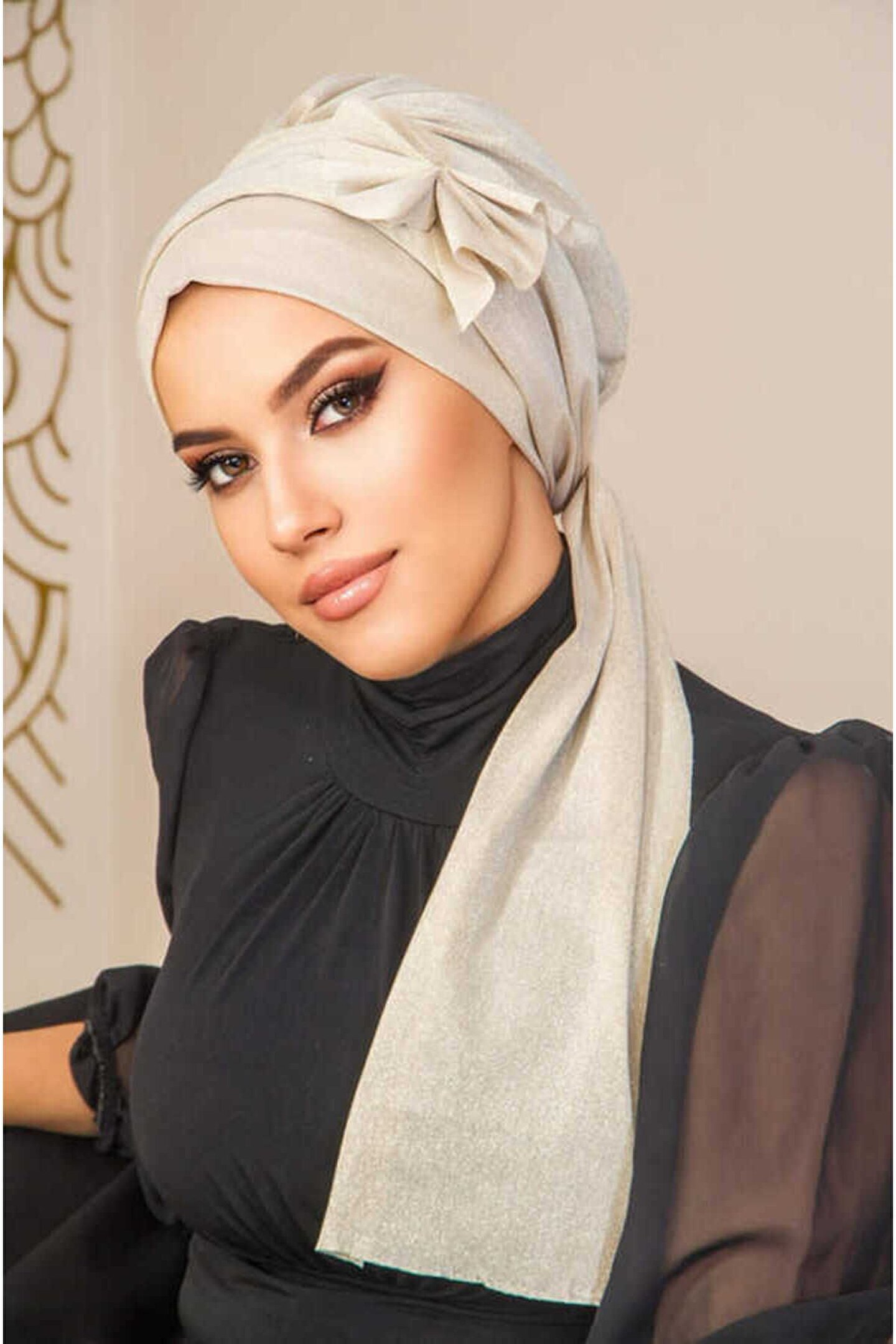 Gri Melanj İnce Örme Armalı Tesettür Bere