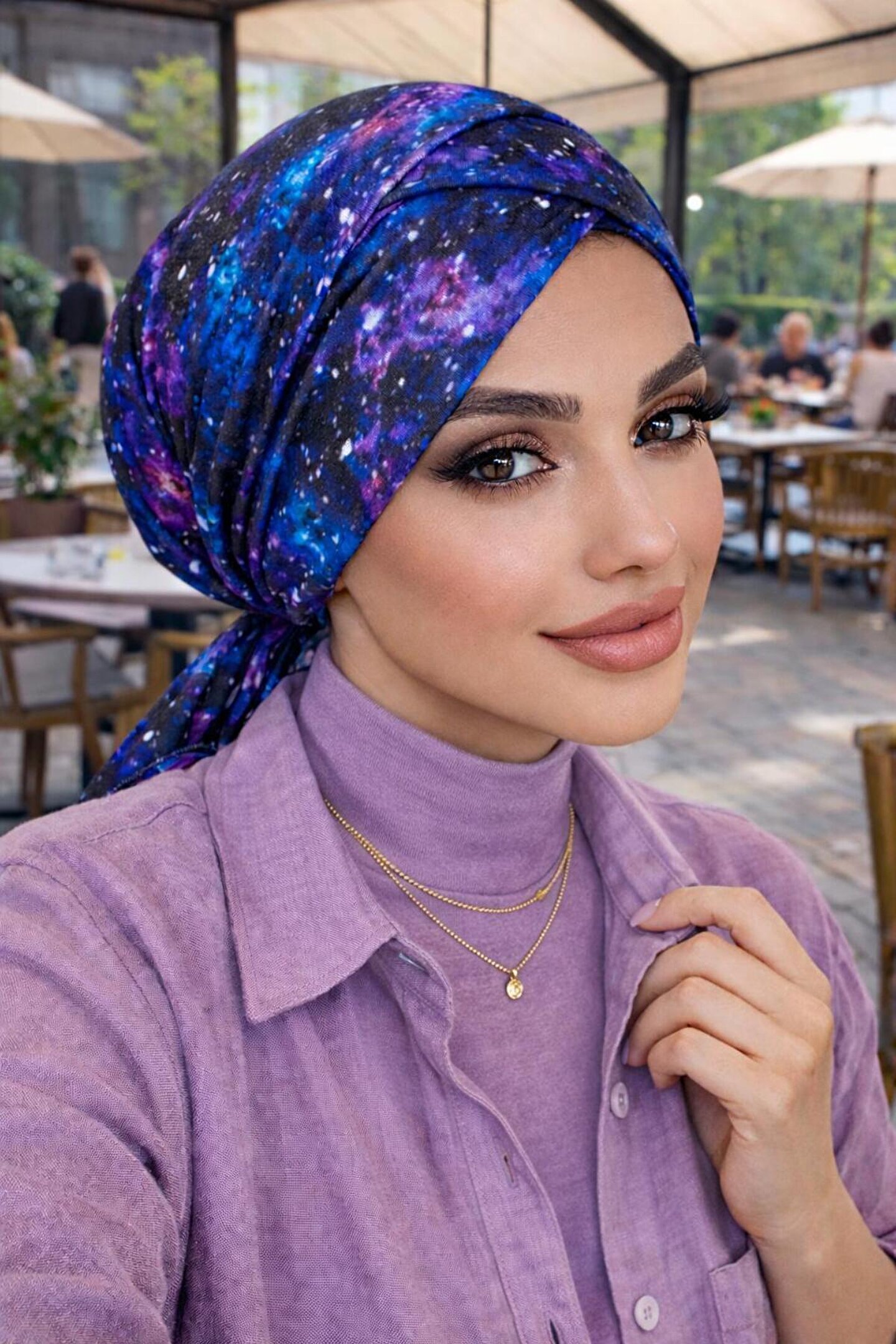 Aişe tesettür Gezegen Desen Çapraz Bantlı Bone