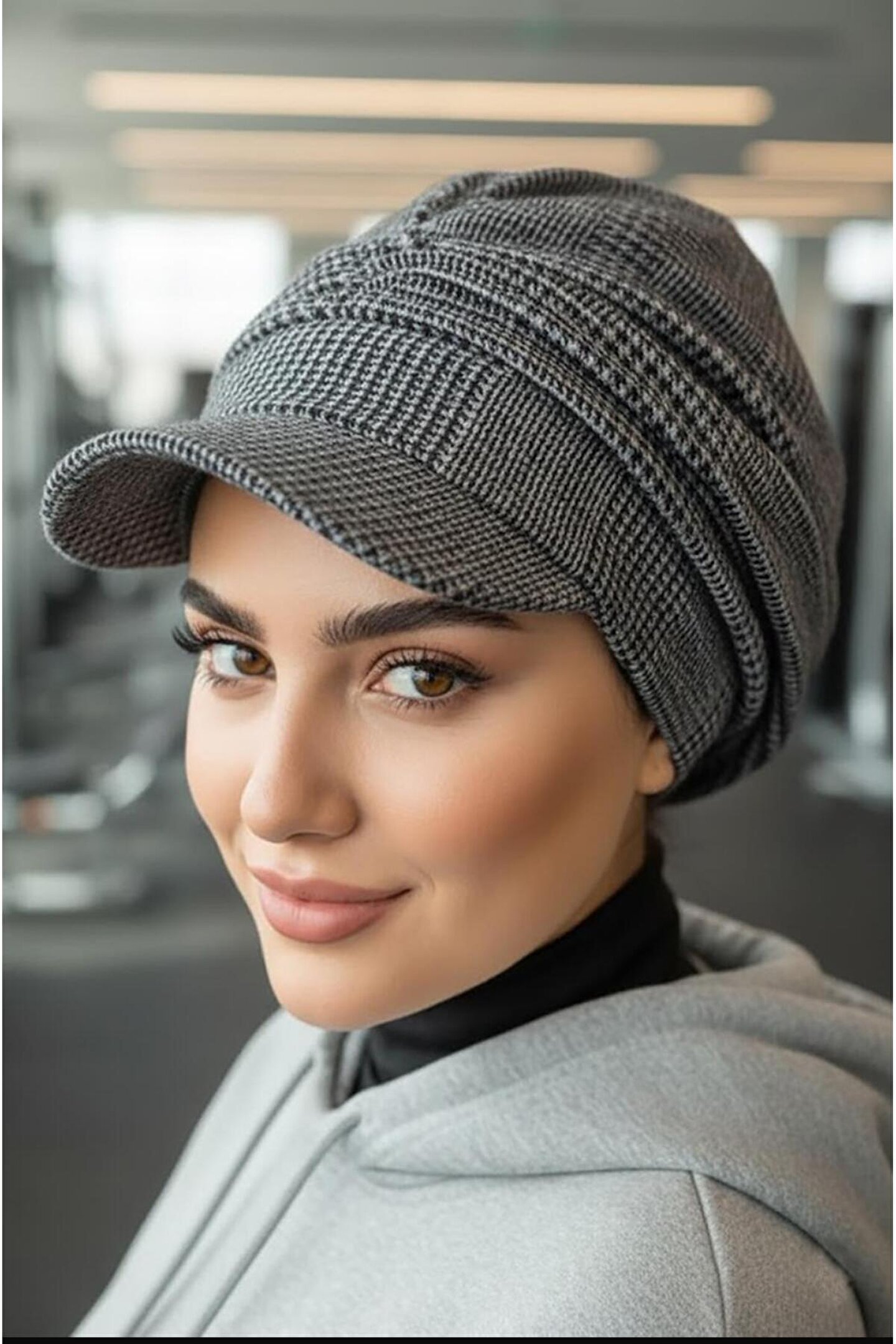Aişe tesettür Gri Siyah Ekose Desen Tesettür Şapka