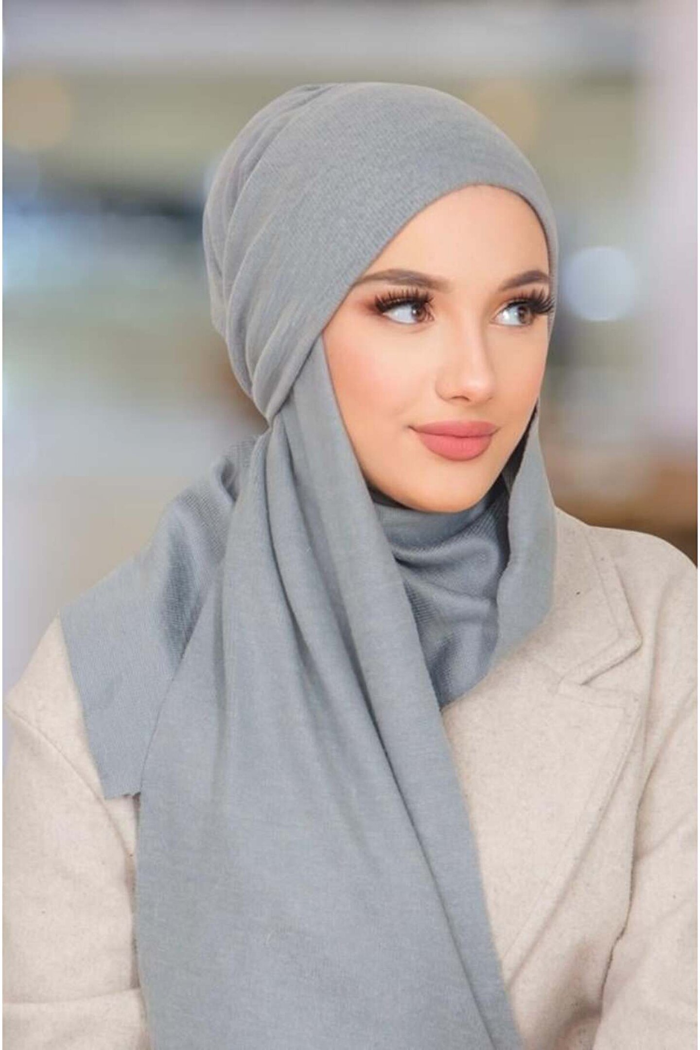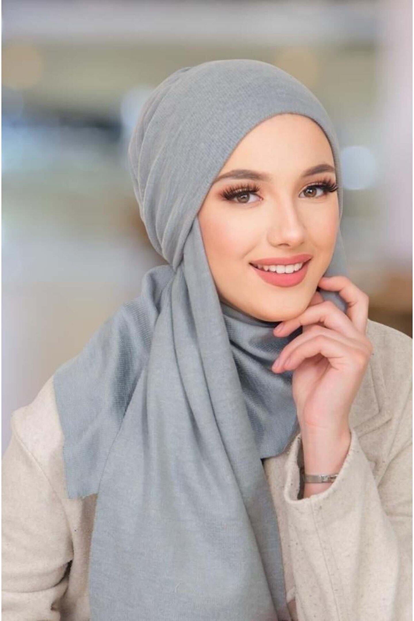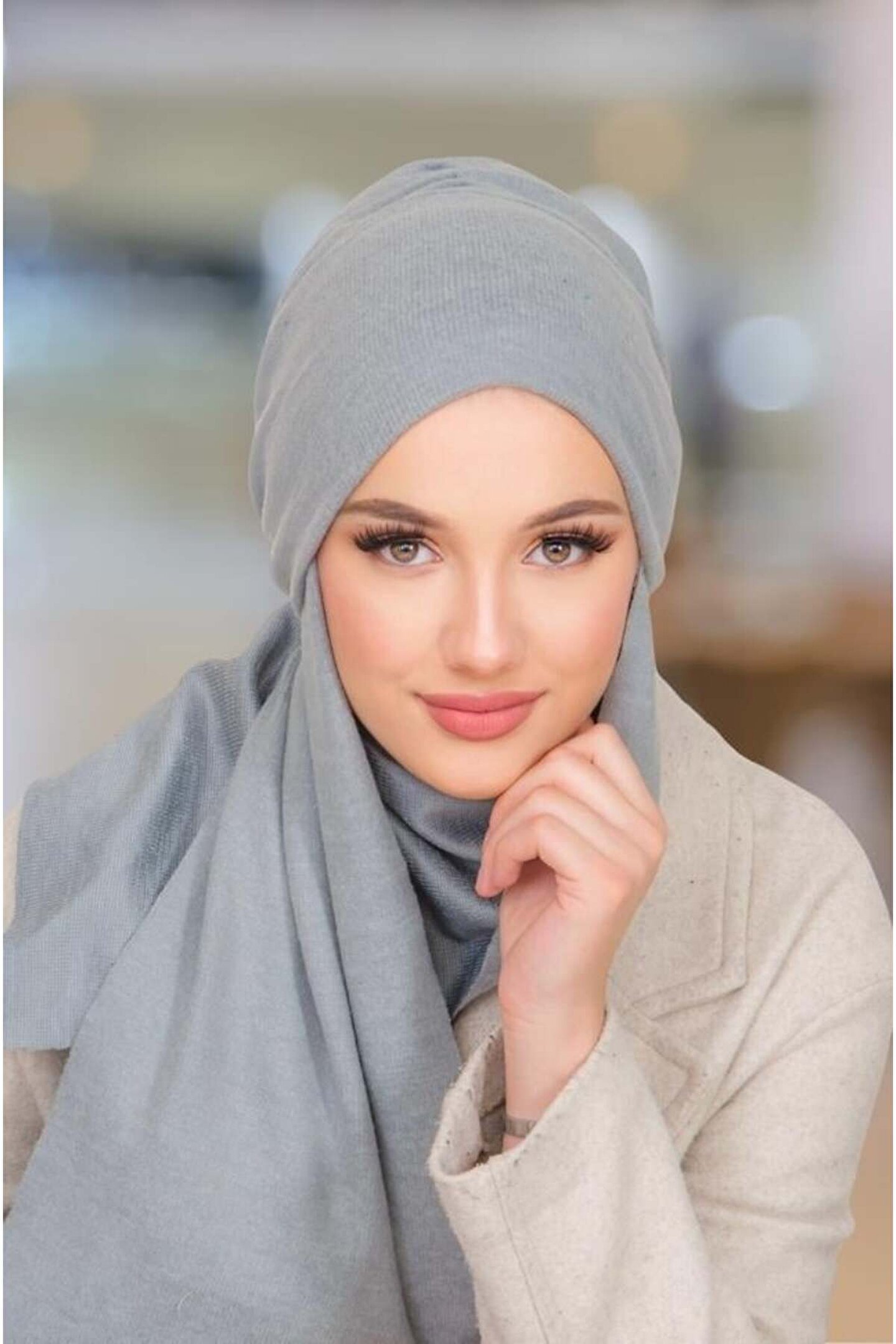Aişe tesettür Gri Triko Kelebek Bone Şal