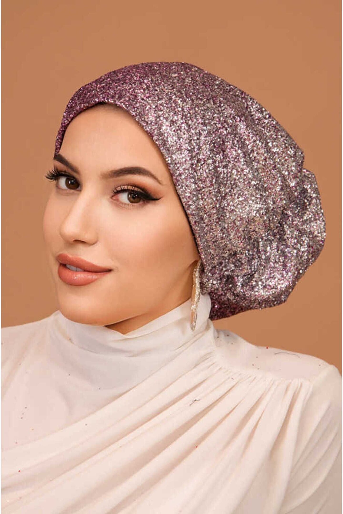 Gümüş Vişne Simli Çağla Abiye Hazır Türban Bone