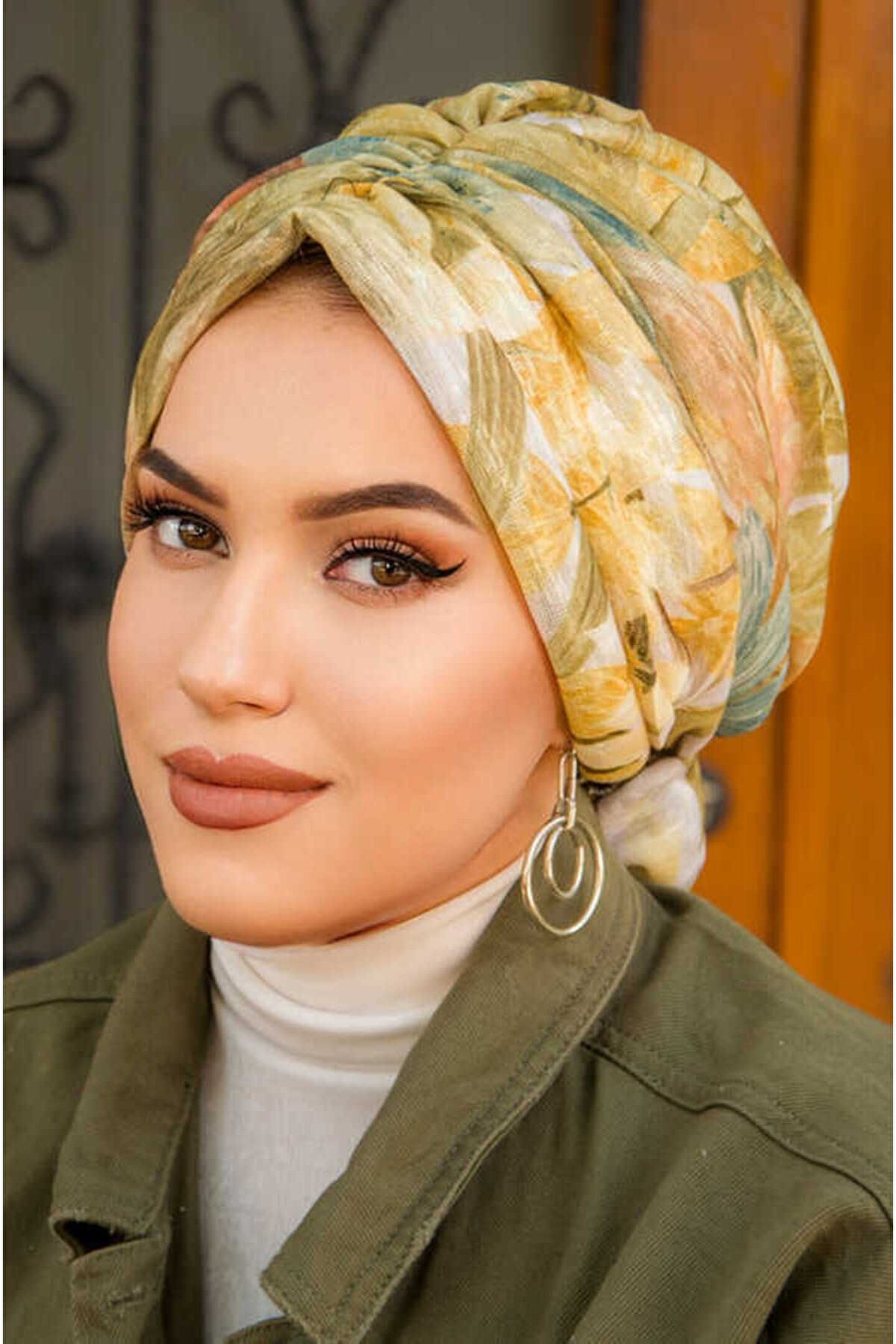 Haki Siyah Desen Büzgülü Salaş Bone