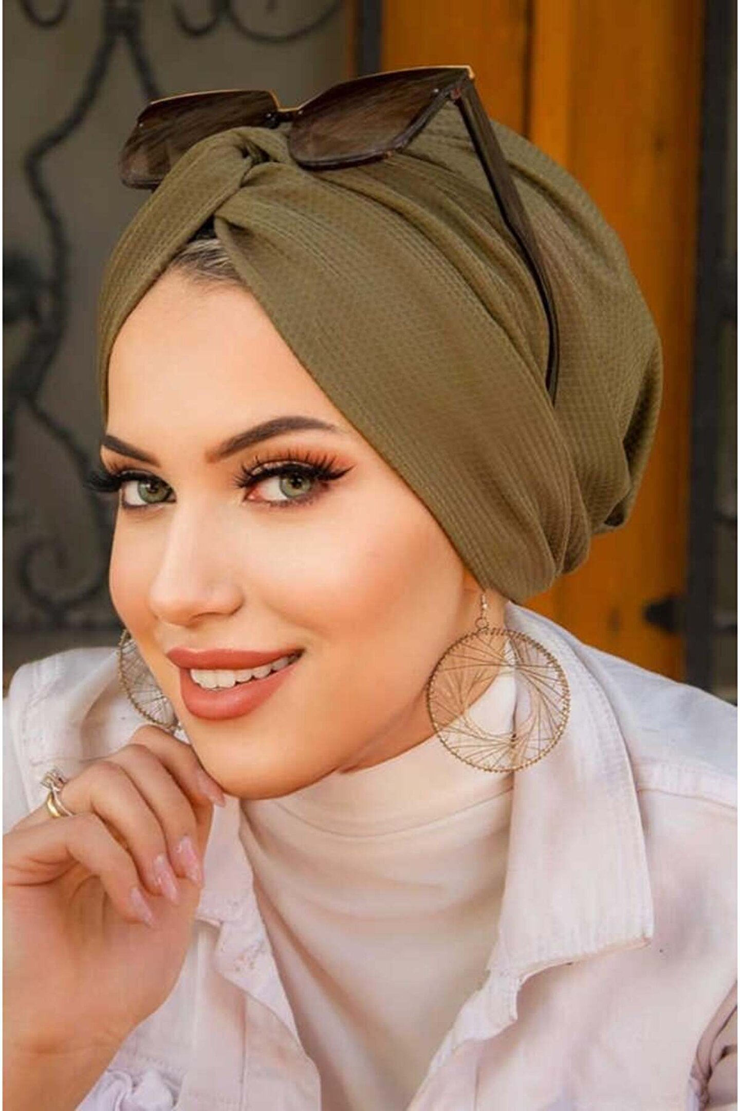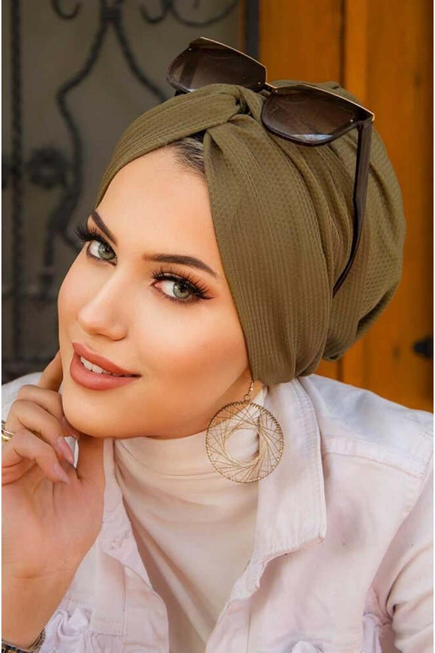 Aişe tesettür Haki Hazır Burgu Düğüm Bone