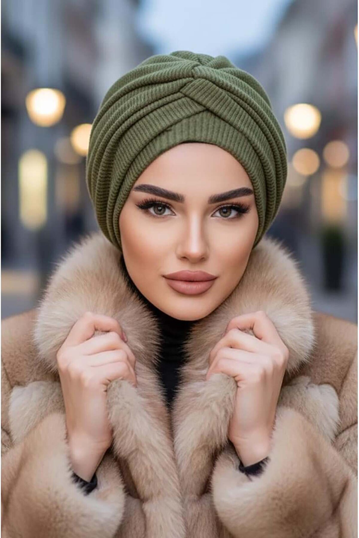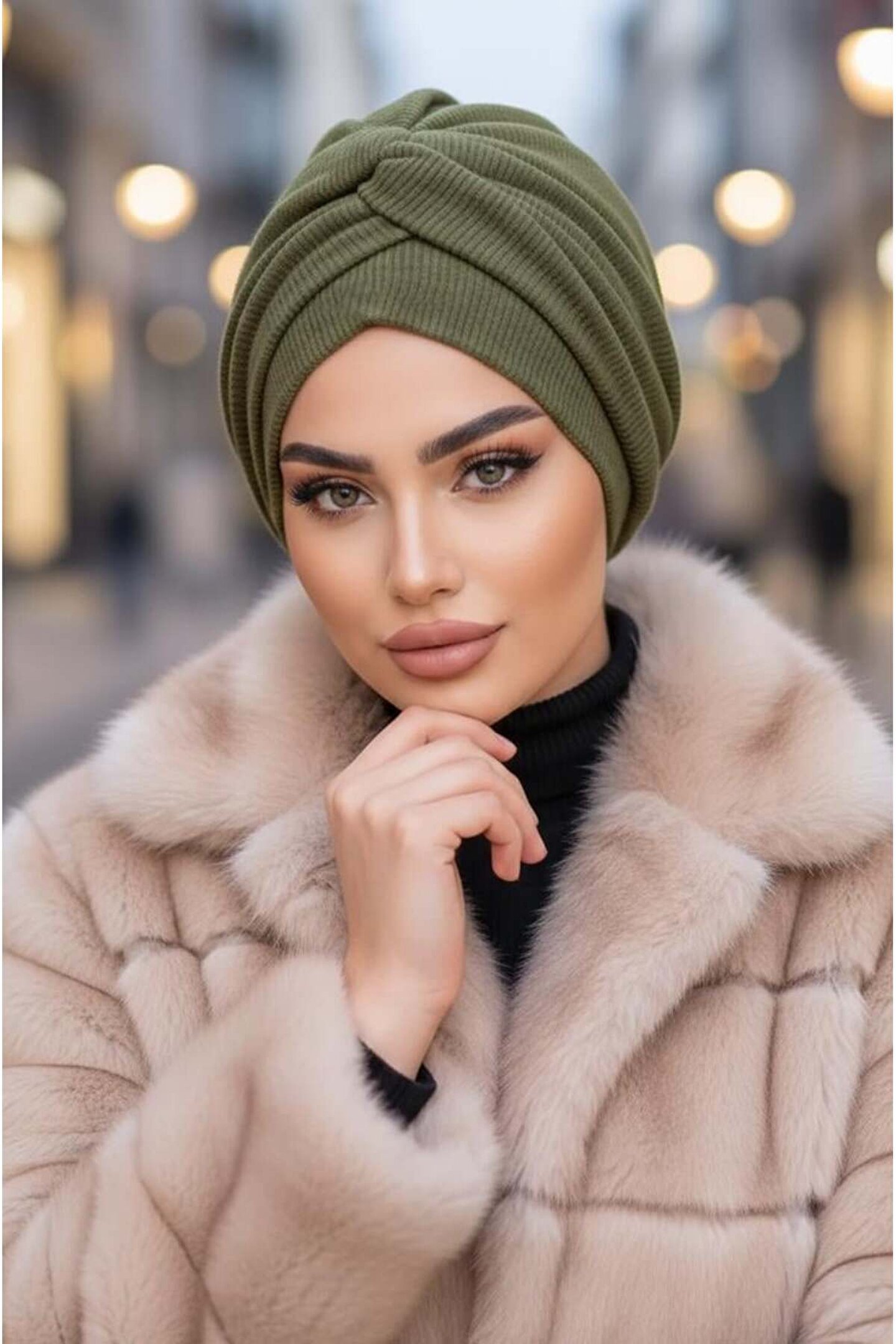 Aişe tesettür Haki Triko Burgu Detaylı Bone