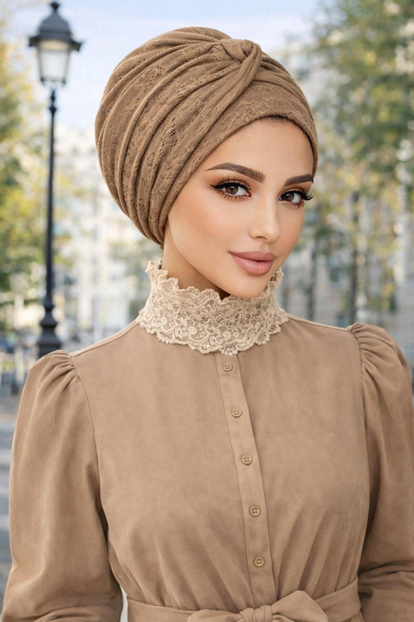 Karamel kahvenin huzur veren şıklığını modern bir tasarımla birleştirdik! Karamel Kahve Kendinden Desenli Burgu Bantlı Bone, kumaşındaki gizli desen detayları ve burgu bant tasarımıyla sıradan bonelerden ayrılıyor. Likralı yapısı sayesinde konforu, "taç" formundaki burgu detayıyla da estetiği bir arada sunuyor.