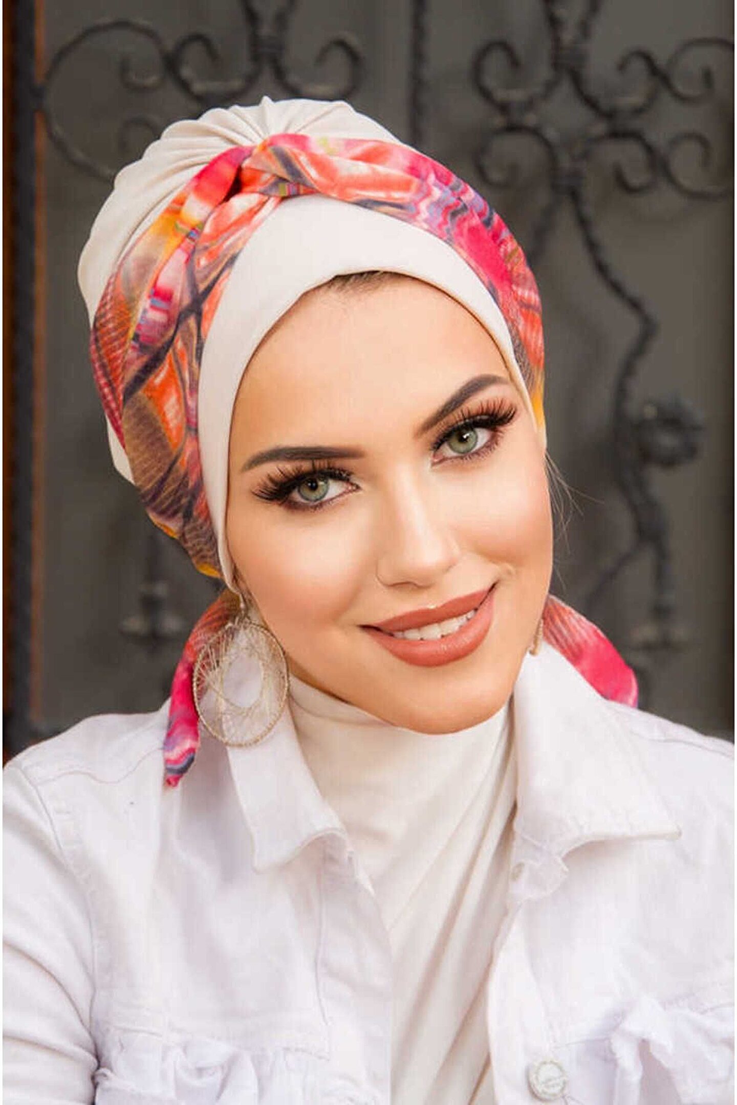Rengarenk Desenli Büzgülü Salaş Bone