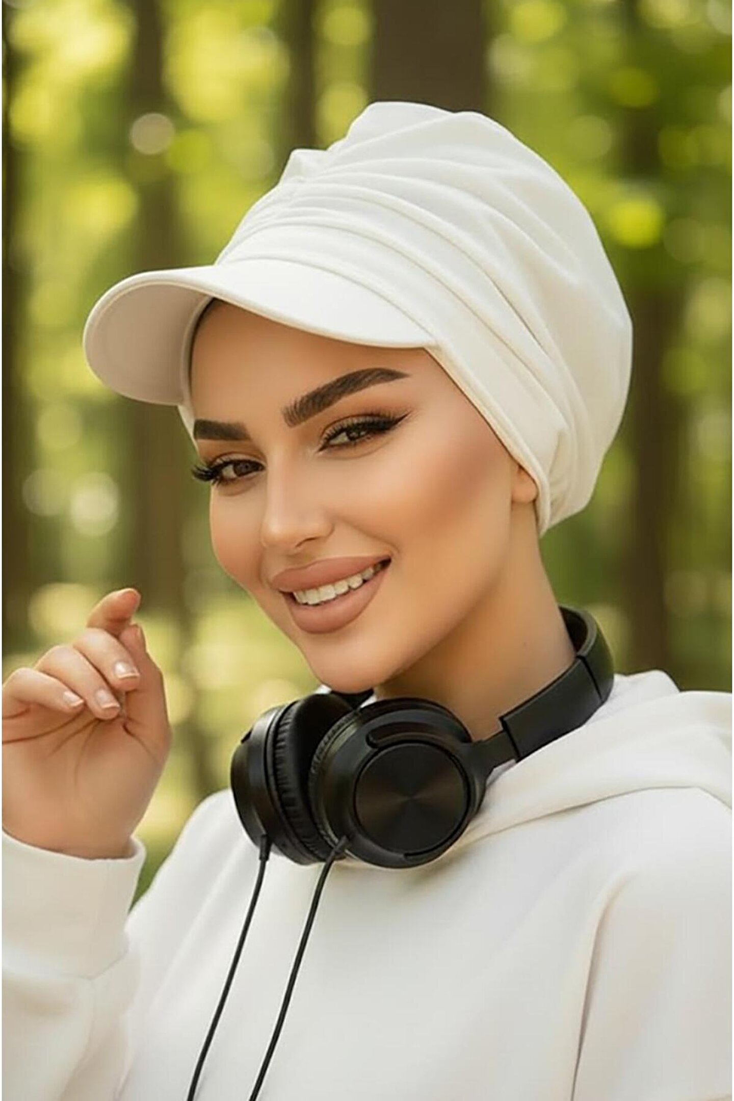 Tesettür giyim koleksiyonuna özel tasarlanmış, her yaş grubuna hitap eden kırık beyaz bantlı şapka bone; Sportswear kategorisinde yer alan bu ürün, aktif ve dinamik bir stil arayanlar için idealdir; %96 viskoz ve %4 elastan materyal bileşeni sayesinde esnek yapısıyla konforlu bir kullanım sunar; Örme kumaş tipi ile üretilmiş olup, dayanıklılığı ve yumuşak dokusuyla dikkat çeker; Yıkama talimatlarına uygun şekilde kolayca temizlenebilir; böylece uzun süreli kullanım için idealdir;