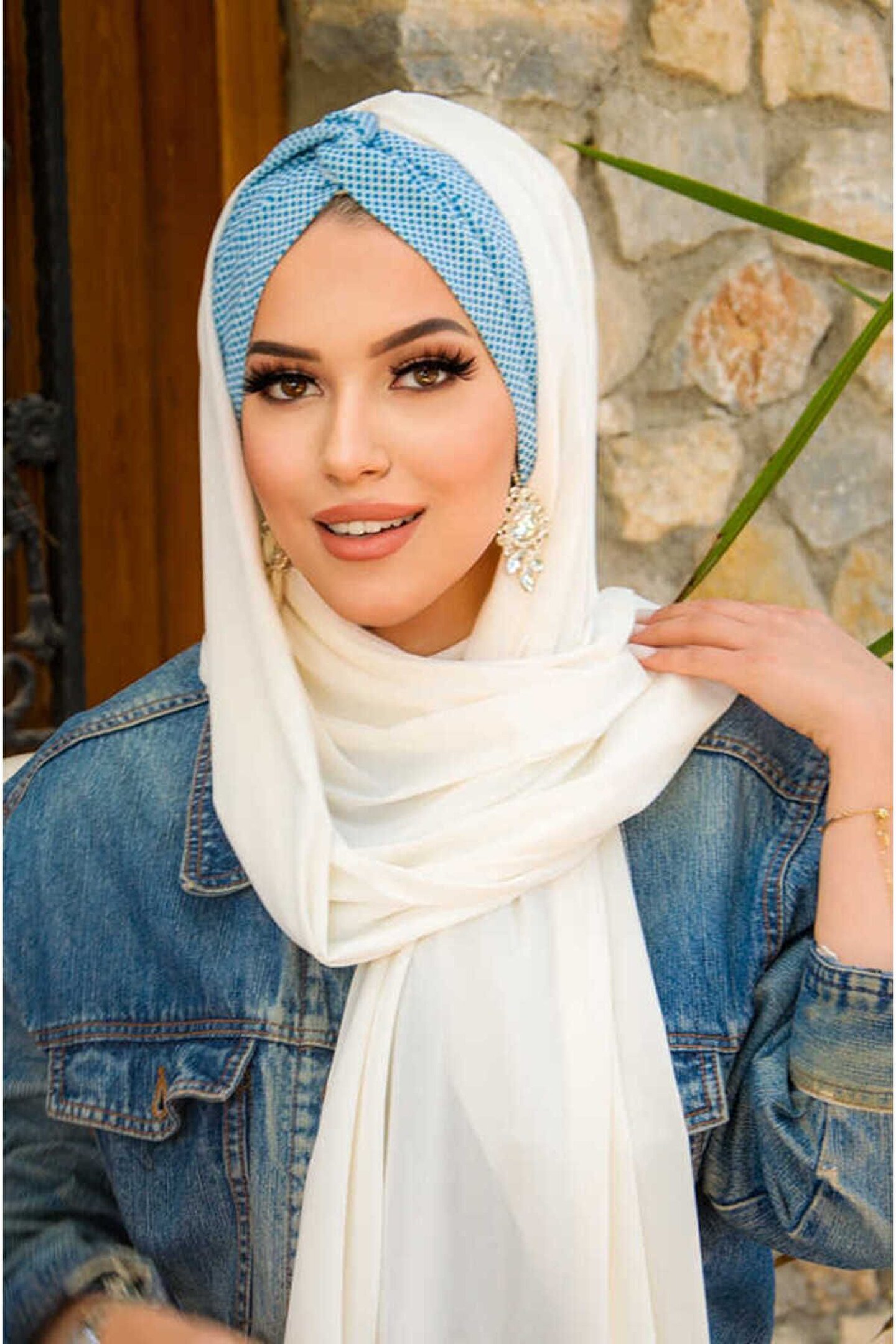 Kırık Beyaz Mavi Burgu Hazır Şal