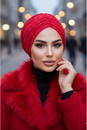 Aişe tesettür Kırmızı Kışlık Büzgülü Bone
