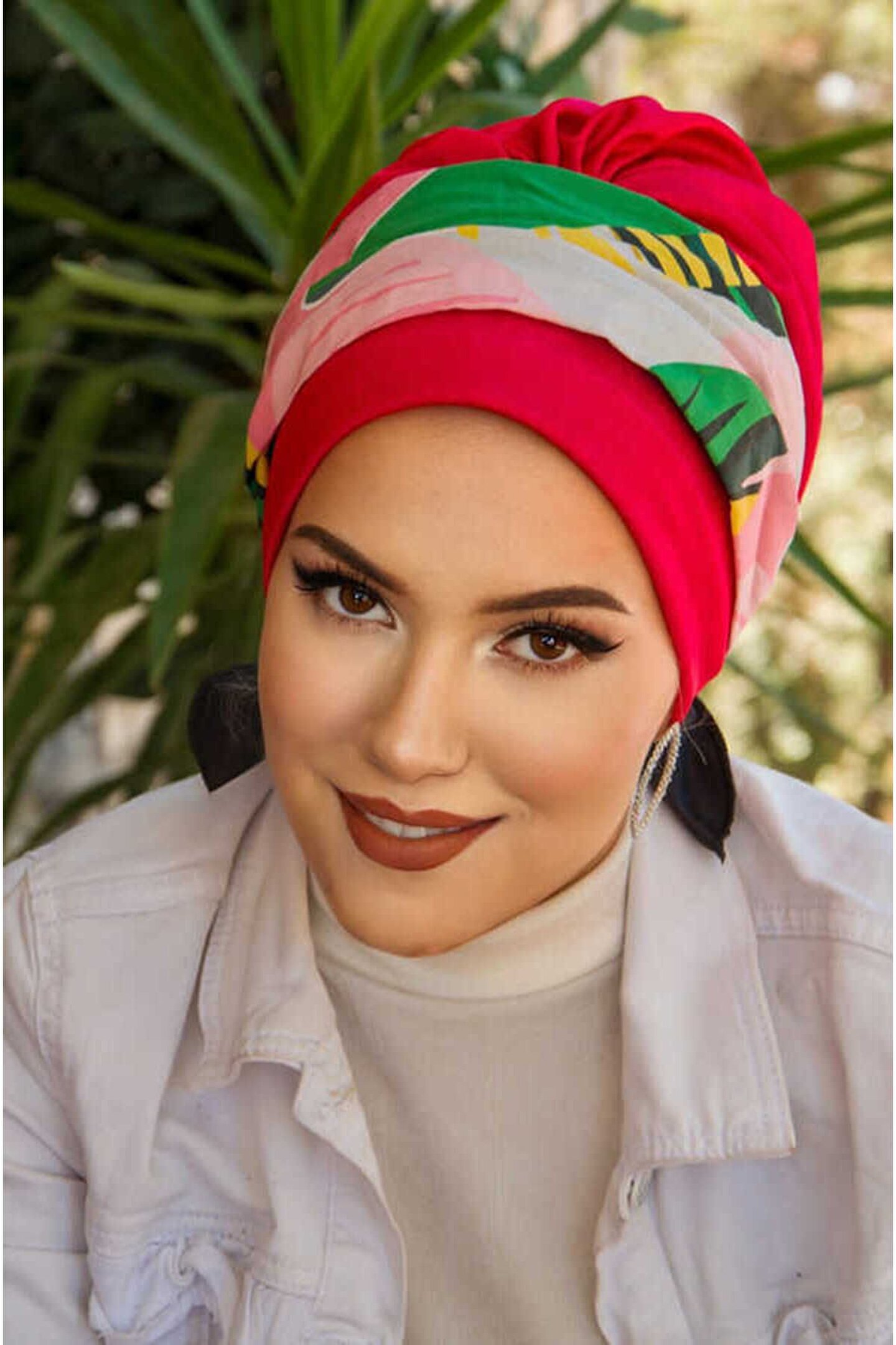 Beyaz Mavi Desenli Büzgülü Salaş Bone