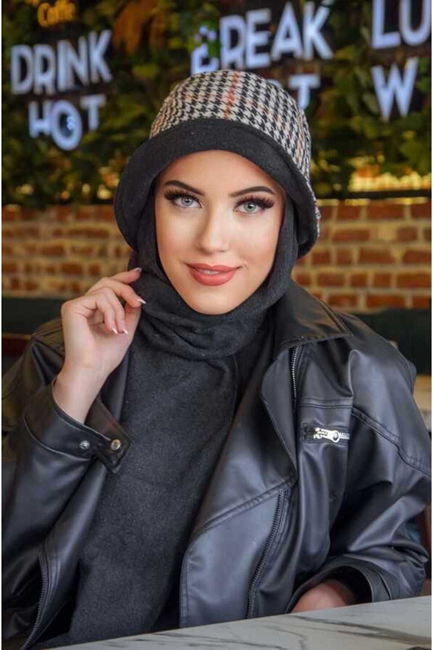 Füme Aksesuarlı Vintage Atkılı Şapka