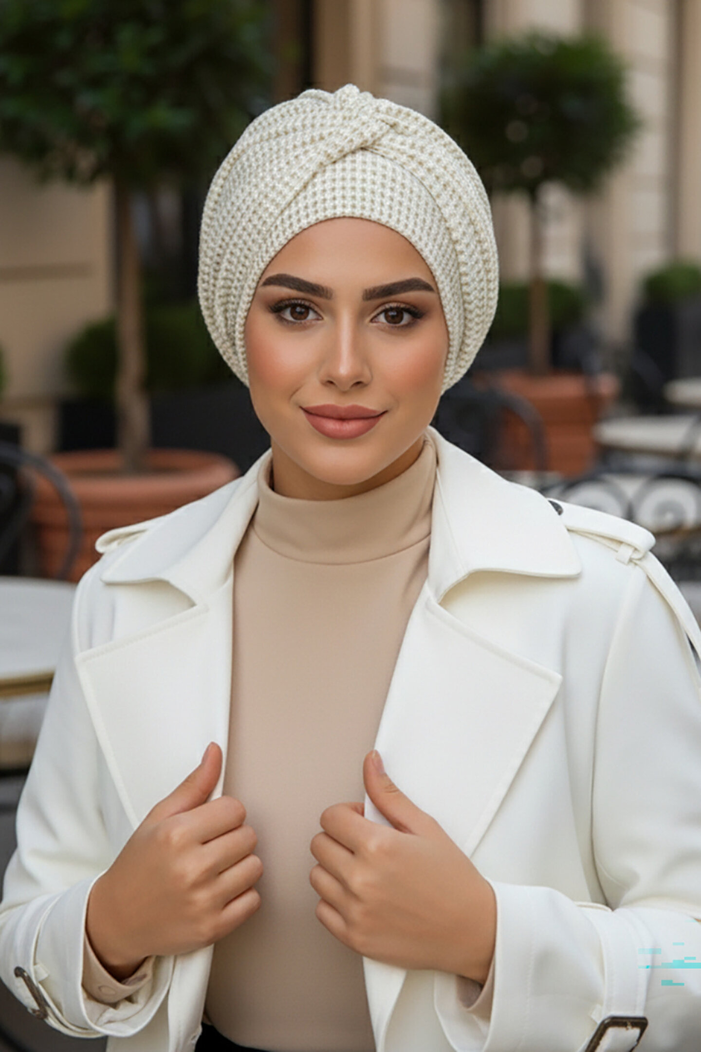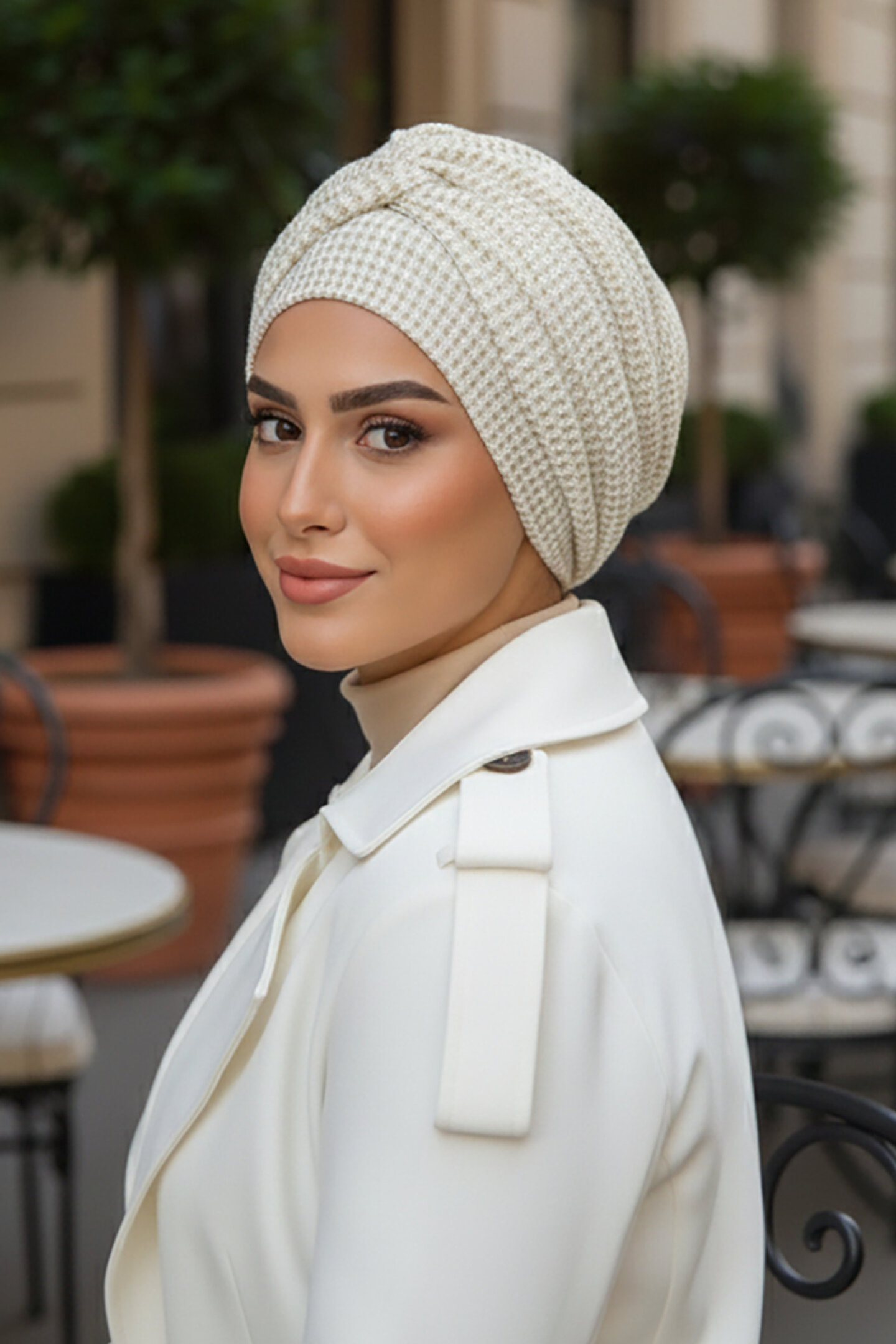 Aişe tesettür Krem Ajurlu Hazır Burgu Detaylı Bone