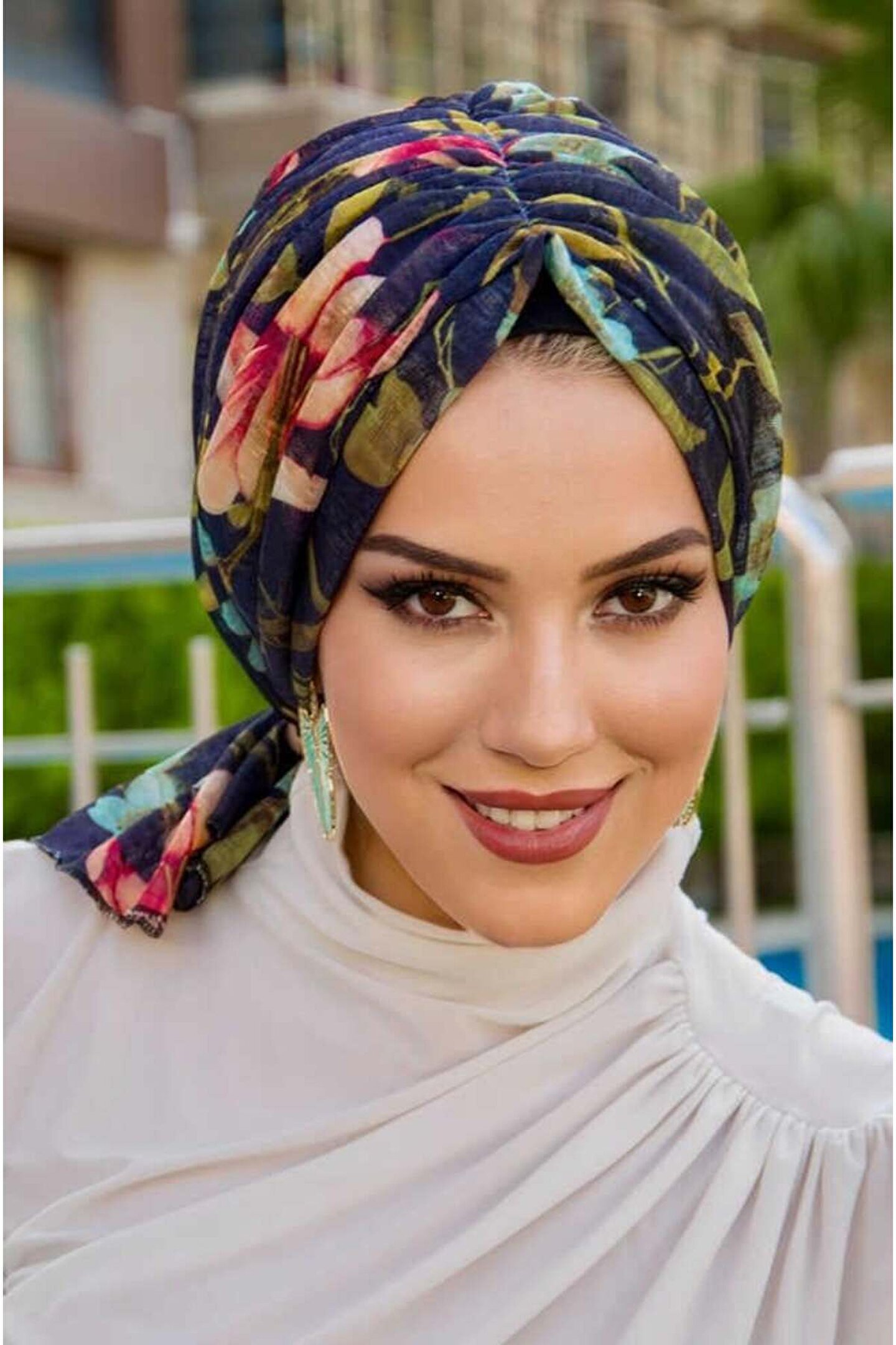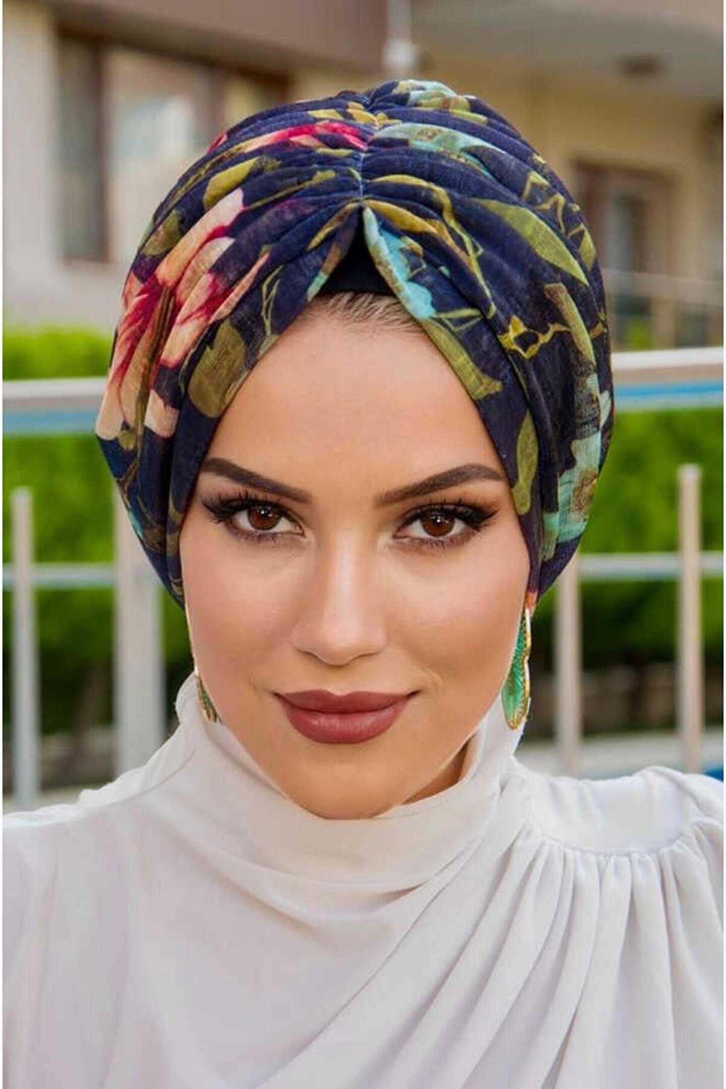 Aişe tesettür Lacivert Çiçek Desen Tokalı Bone