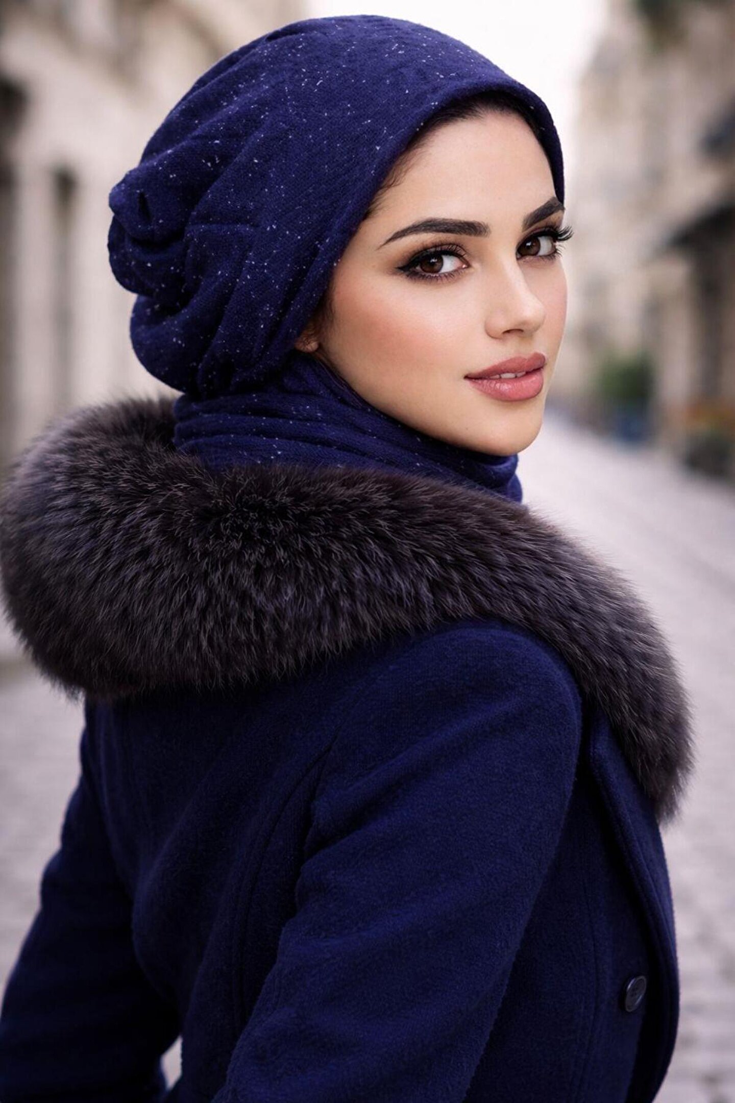 Aişe tesettür Lacivert Karyağdı Atkılı Tesettür Bere