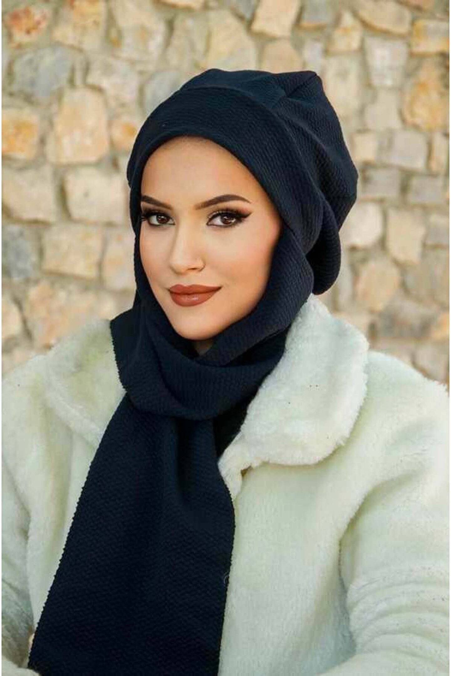 Aişe tesettür Lacivert Kendinden Desenli Tesettür Bere