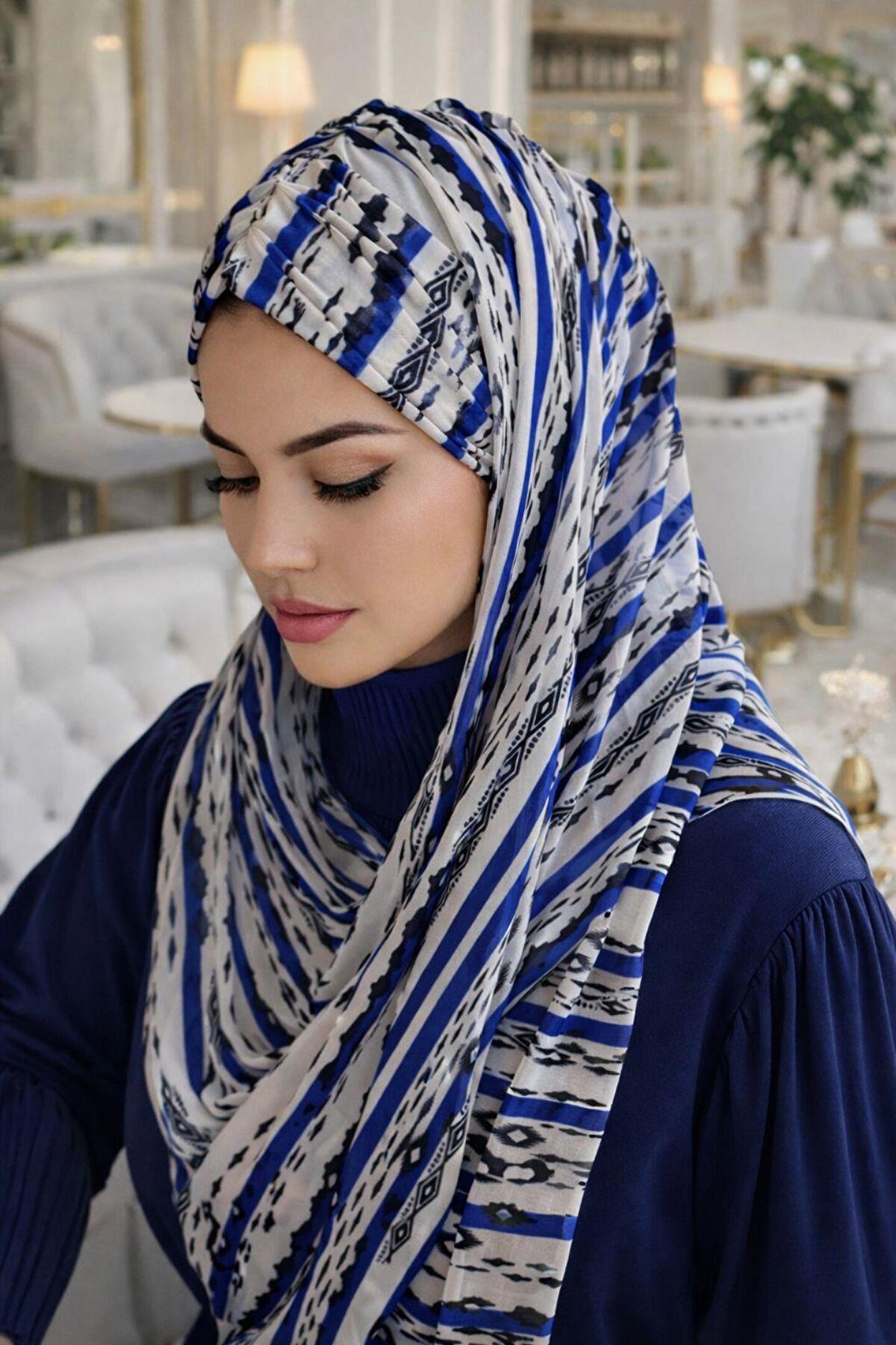 Yazın kavurucu sıcaklarında hem şık hem de serin kalmak artık çok kolay! Mavi Beyaz Desenli Hazır Şal, dijital tül kumaşının hafifliği ve marin esintili desenleriyle stilinizi tazelemeye geliyor. Enseden geçirmeli pratik yapısı sayesinde, iğneleme veya karmaşık bağlama yöntemleriyle uğraşmadan saniyeler içinde dışarı çıkmaya hazır olacaksınız.