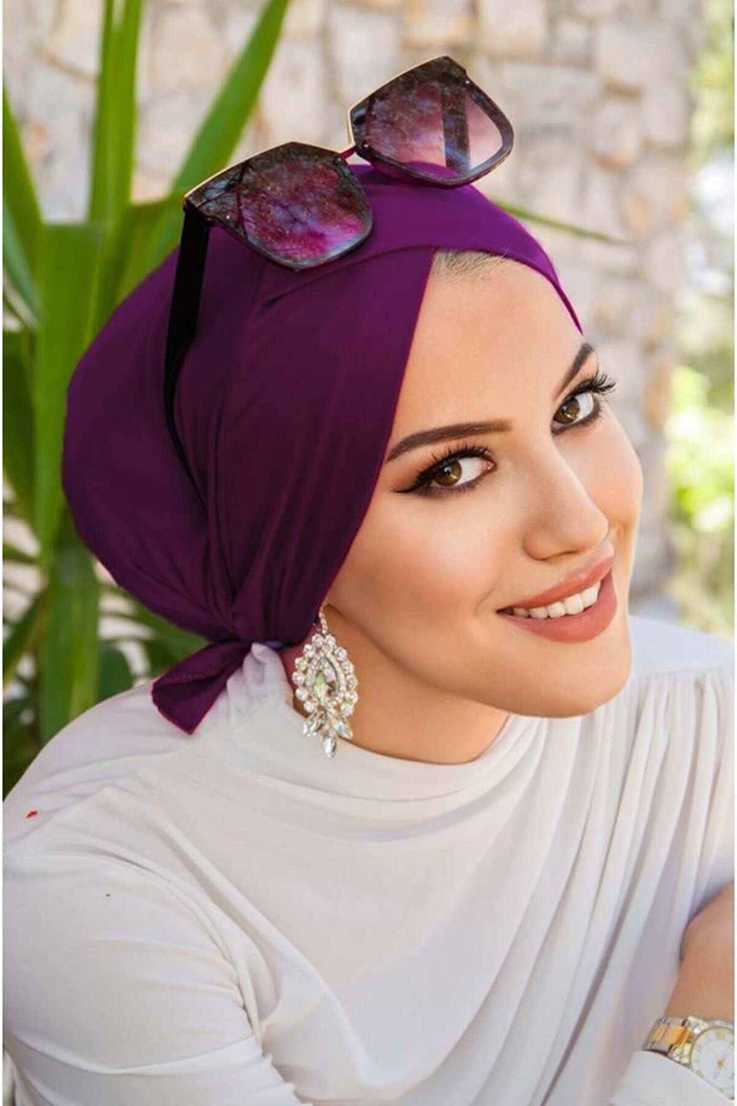 Aişe tesettür Mürdüm Çapraz Bantlı Deniz - Havuz Bonesi